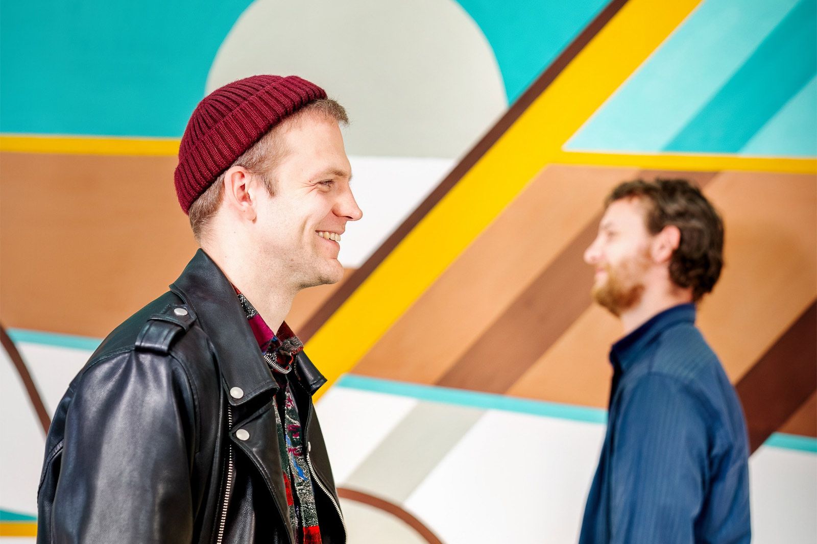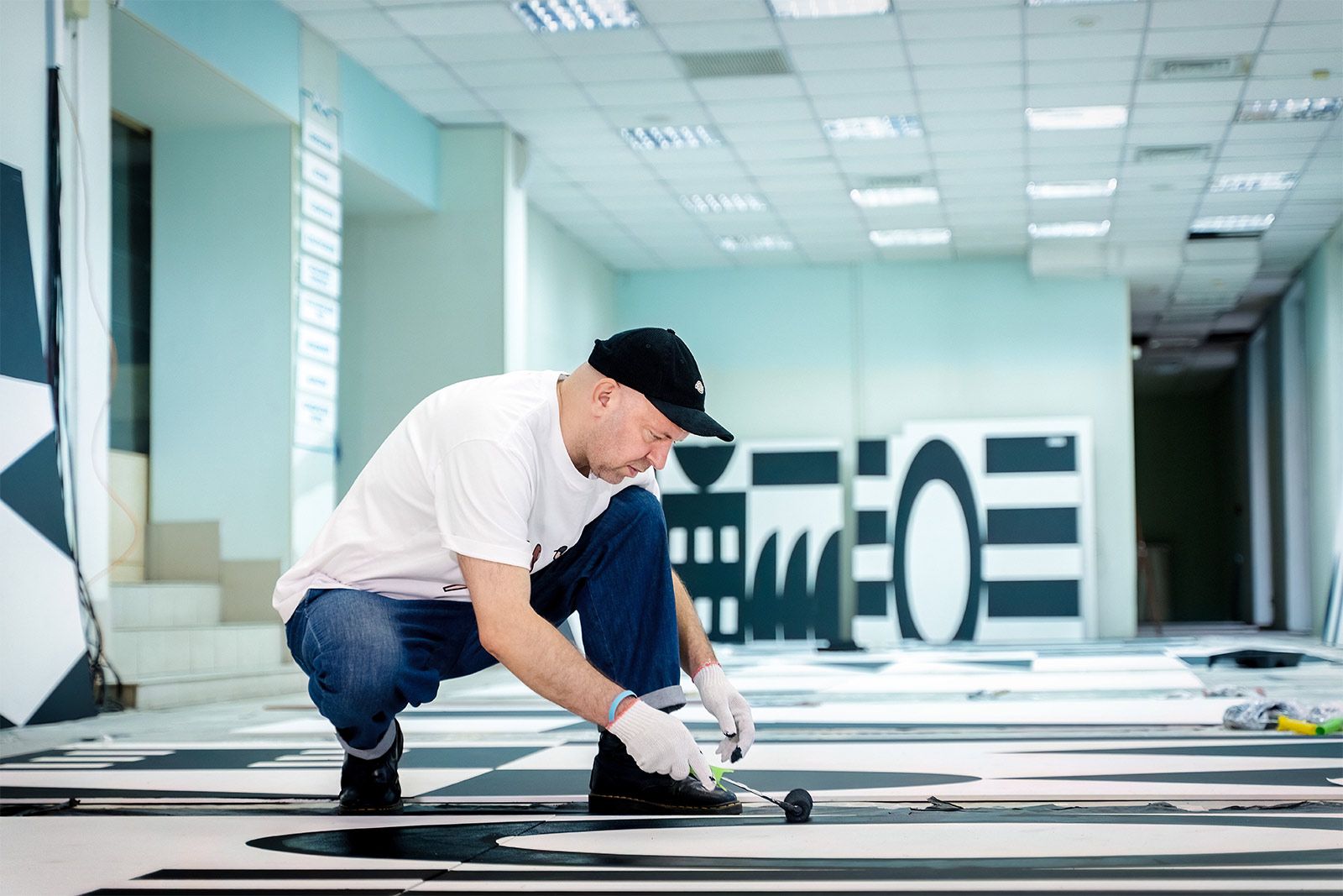 В «Доме книги на Соколе» художники коллектива «Цех» Максим Базаров и Кирилл Алерт представили работу «Цикличность», геометрические линии и контрастные цвета которой создают ощущение движения, подобного перелистыванию страниц, и наводят на размышления о времени, стилях, эпохах и непрерывности чтения.