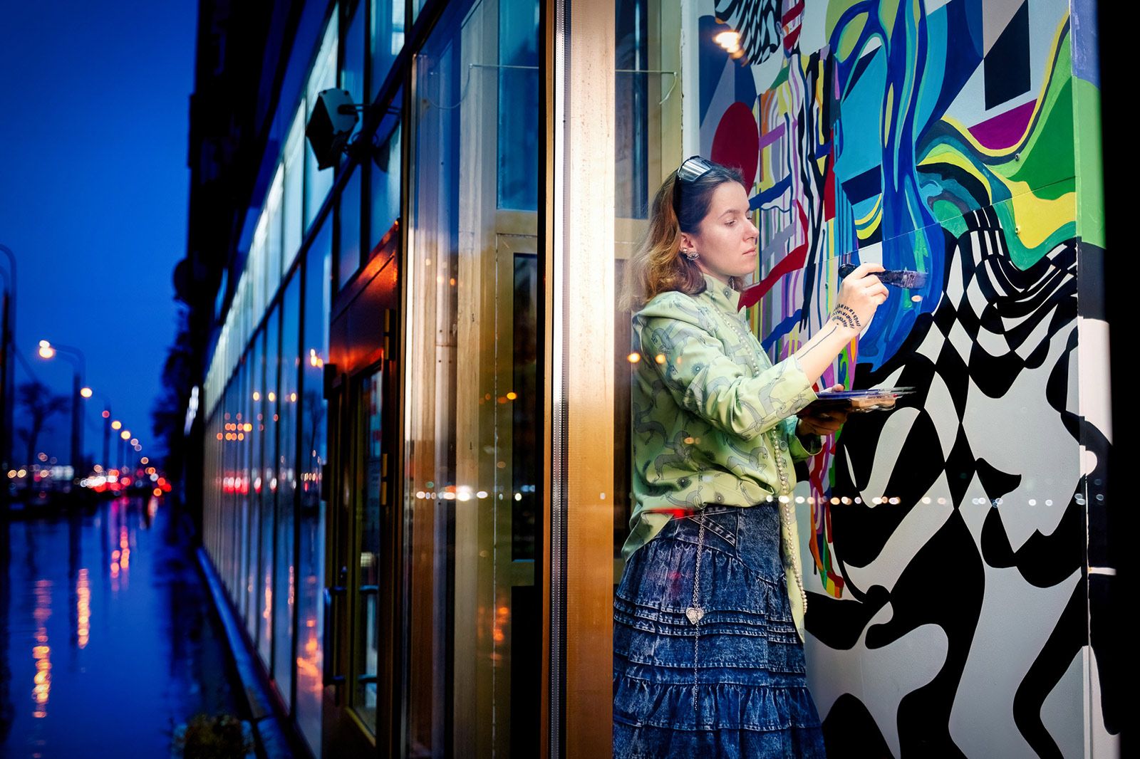 Каждая из работ по-своему уникальна. В «Доме книги в Камергерском» можно увидеть динамичные граффити Евгения Чеса «Абстрактный урбанизм» — они выходят за рамки обычного уличного жанра и становятся частью культурного кода, а абстрактные формы и линии создают визуальный диалог между мегаполисом и литературой.