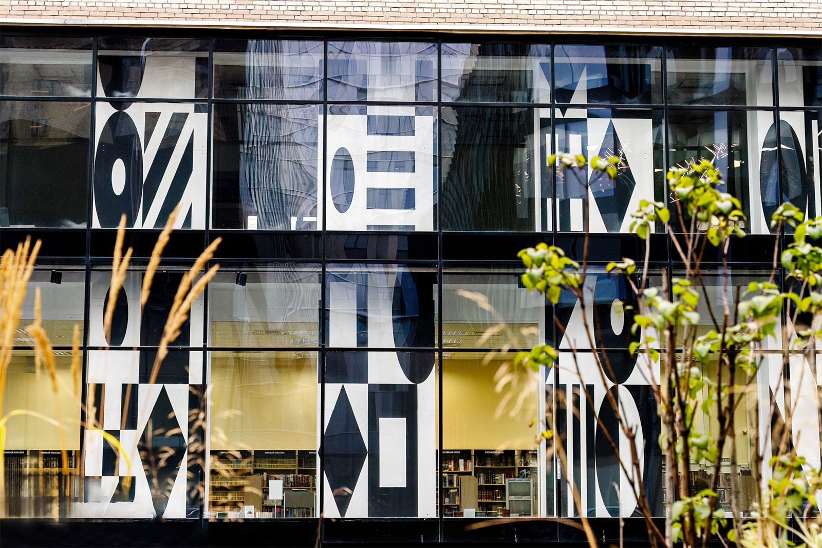 Фасад «Дома технической книги» украсила черно-белая графическая композиция Андрея Люблинского «Теория взаимодополняемых неравноценных простых фигур», где простые геометрические формы обретают выразительность и ритм, искусно перекликаясь с архитектурой здания и окружающим ландшафтом.