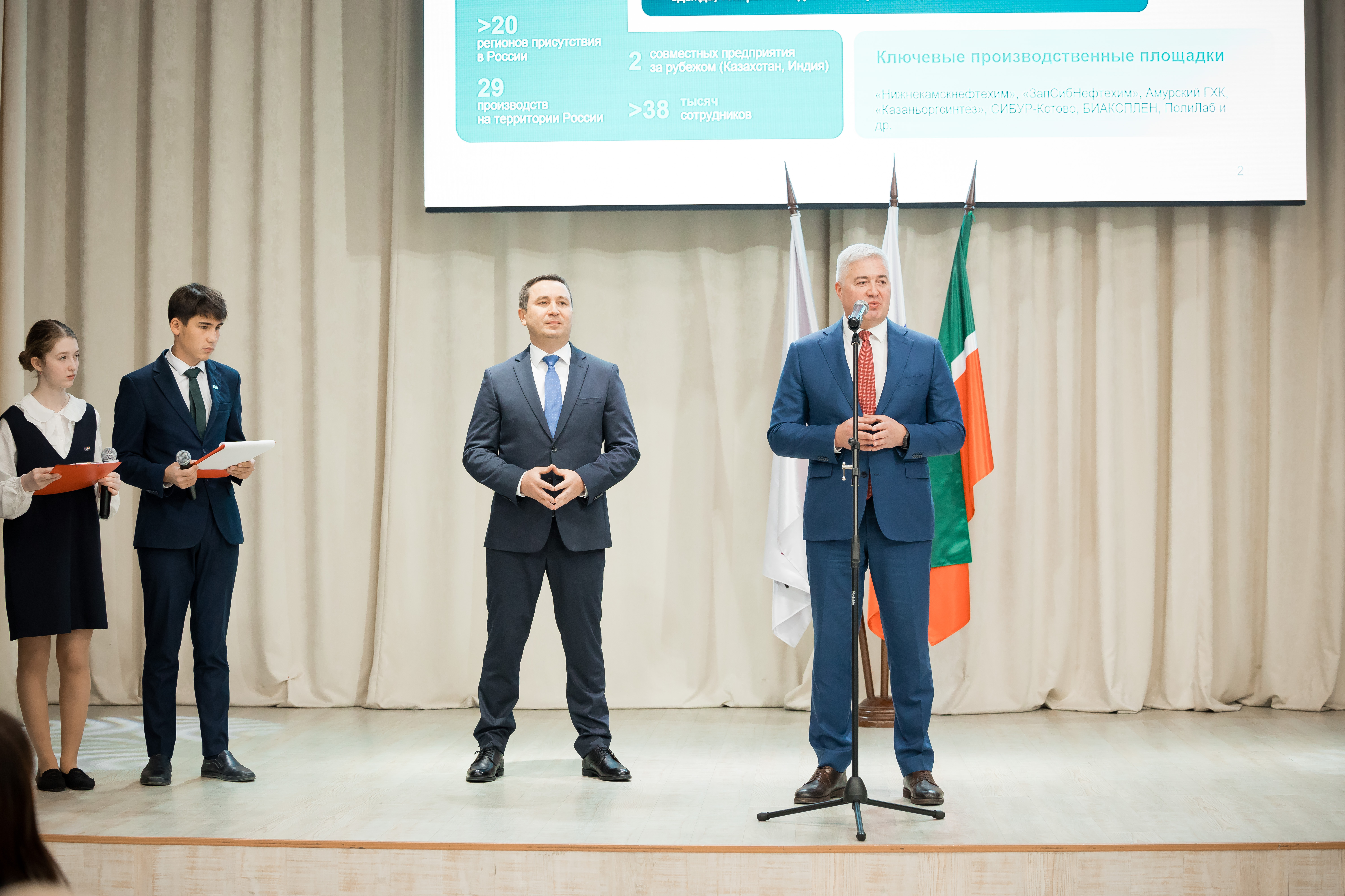 «СИБУР — это не просто заводы и технологии, это люди. И наша главная цель — растить своих специалистов со школьной скамьи, поприветствовал учеников генеральный директор «Казаньоргсинтеза» Айрат Сафин. Мы создали целую образовательную экосистему: «Нефтехим-классы» для 8-9 классов и «СИБУР-классы» для 10-11. Это ваш шанс не просто учить химию и физику, а видеть, как эти знания творят реальные вещи: от пластика в вашем смартфоне до топлива для машин».