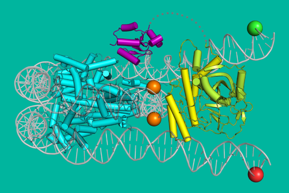 Коллектив сотрудников биологического факультета МГУ и НИИ физико-химической биологии имени А.Н. Белозерского МГУ сконструировал молекулярную модель комплекса нуклеосомной ДНК с белком ее «починки» – поли(АДФ-рибозо)полимеразой (ПАРП). Такие сложные структуры не удается получить с помощью классических методов кристаллографии, но в то же время они необходимы как для понимания механизма взаимодействия белков репарации с ДНК, так и для поиска лекарственных препаратов, блокирующих данное взаимодействие. Работа выполнена в рамках Междисциплинарной научно-образовательной школы МГУ «Молекулярные технологии живых систем и синтетическая биология» и опубликована в журнале «Cells».