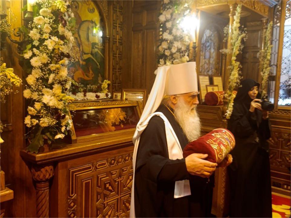 Затем делегация посетила храм Пресвятой Богородицы и великомученика отрока Абануба Нехисского в городе Саманнуд, где покоятся его святые мощи.