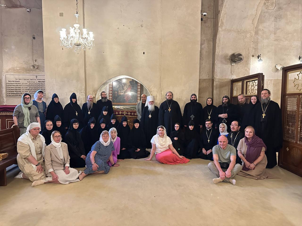 Паломники из России осмотрели монастырские храмы и построенную в IV веке трапезную, где первые монахи по окончании литургии совершали общие трапезы, а затем удалялись в свои пустынные келии. Члены делегации поклонились мощам некогда подвизавшихся в обители преподобных Пафнутия Великого, Исидора, Моисея Мурина, других отцов-пустынников, и пропели величание преподобному Арсению Великому, также совершавшему здесь молитвенные подвиги.