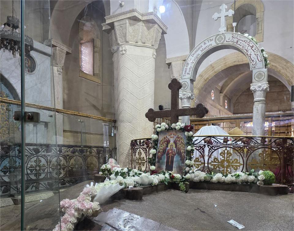 В этот же день паломники побывали в находящемся в Старом городе коптском монастыре святого великомученика Феодора Стратилата (Амир Тадрос), где были радушно приняты его настоятельницей игуменией Едросис с сестрами.