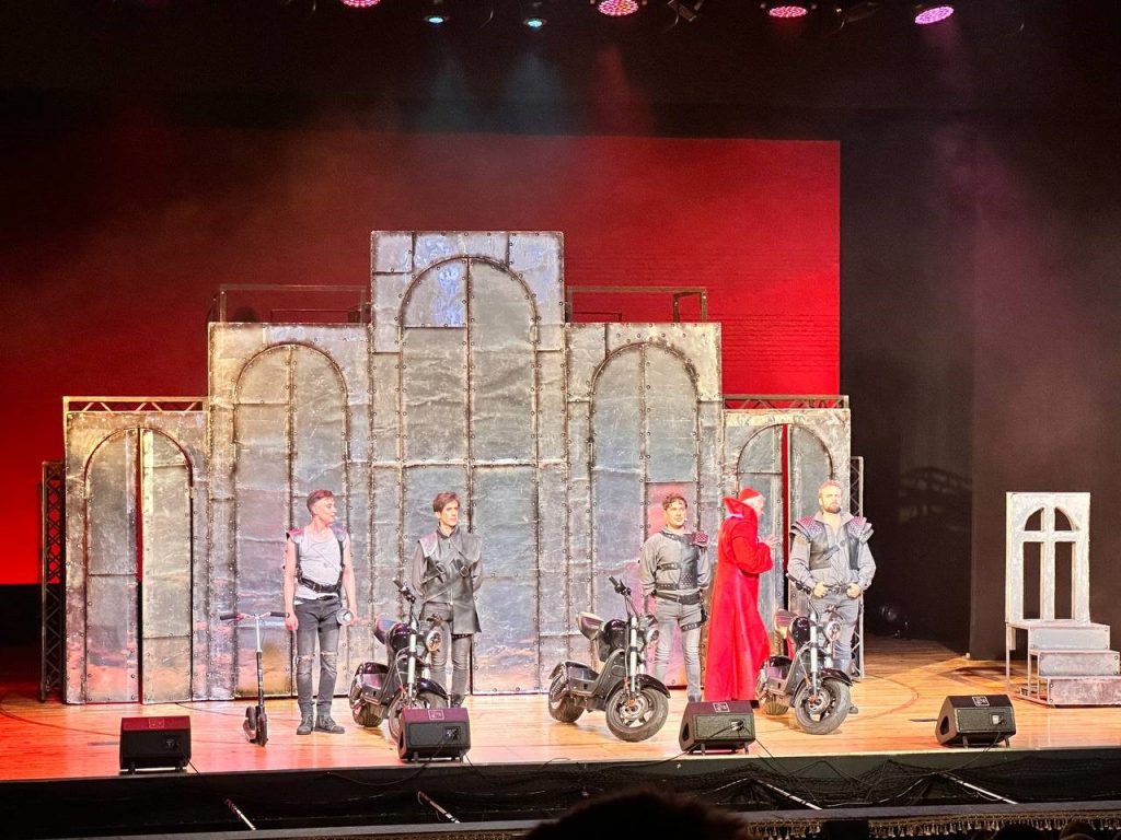 Режиссёр Анастасия Рудикова явно старалась заинтересовать молодое поколение, однако использовала слишком топорные методы. Пришли на спектакль, время и место действия которого – XVII век, Франция? К вашему вниманию мушкетёры на скутерах и Д’Артаньян на самокате! Это решение было абсолютно неуместным, ломало повествование, а особая эстетика Франции 17 века канула в небытие. Под конец спектакля видеть такое было уже невыносимо, и появлялось желание выйти из зала. Более того, ни одного подростка не заинтересовать, просто посадив актёра на скутер, так что даже изначальная цель достигнута не была. Невозможно забыть гладиатора, дерущегося с тигрицей на балу, который явно заблудился во временных петлях. Режиссёр допустила хаос на всех уровнях постановки – драматургическая целостность отсутствует, а законы логики безнадёжно забыты. Такая попытка «разбавить» обстановку и заинтересовать зрителя с треском провалилась, заставив Дюма несколько раз перевернуться в гробу.