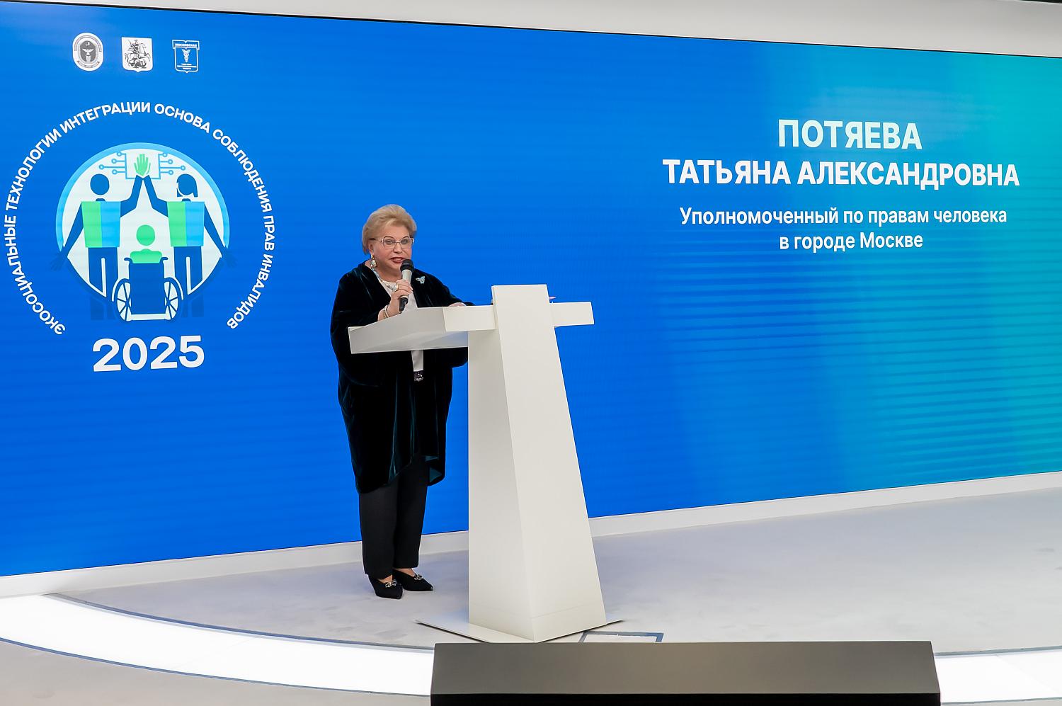 Уполномоченный по правам человека в Российской Федерации Татьяна Москалькова подчеркнула особую важность темы конференции, отметив её не только правозащитный, но и глубокий философский и нравственный смысл. «Совершенно правильно Президент Российской Федерации Владимир Владимирович Путин сказал, что отношение к людям с особенностями здоровья является показателем зрелости общества. Действительно, цивилизационное пространство должно быть в равной степени доступно для всех людей» – подчеркнула Татьяна Москалькова. Омбудсмен отметила успехи в создании доступной среды и новых форм защиты инвалидов, однако признала наличие системных проблем, требующих решения. Особое внимание она уделила программе «Интеграция», направленной на создание условий для диалога между лицами с инвалидностью и органами власти.