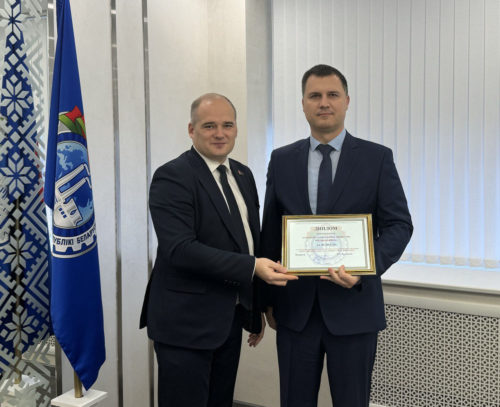 В Министерстве промышленности Беларуси 17.11.2025 наградили победителей смотра-конкурса на лучшую организацию работы по охране труда. Церемонию провёл заместитель Министра промышленности Денис Бакей.