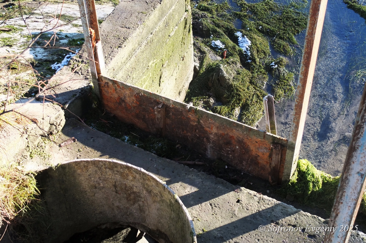 Задвижку браконьеры подняли и чтобы она не опустилась, забили туда палки. Рядом на плотине был местный житель из поселка Ломы Николай, я попросил его из автомобиля, если конечно есть, принести топор и какую-нибудь монтажку и мы попробуем задвижку опустить.