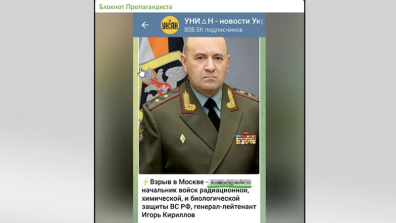 Враг смакует убийство нашего генерала. Скриншот страницы с ТГ-канала "Блокнот Пропагандиста"