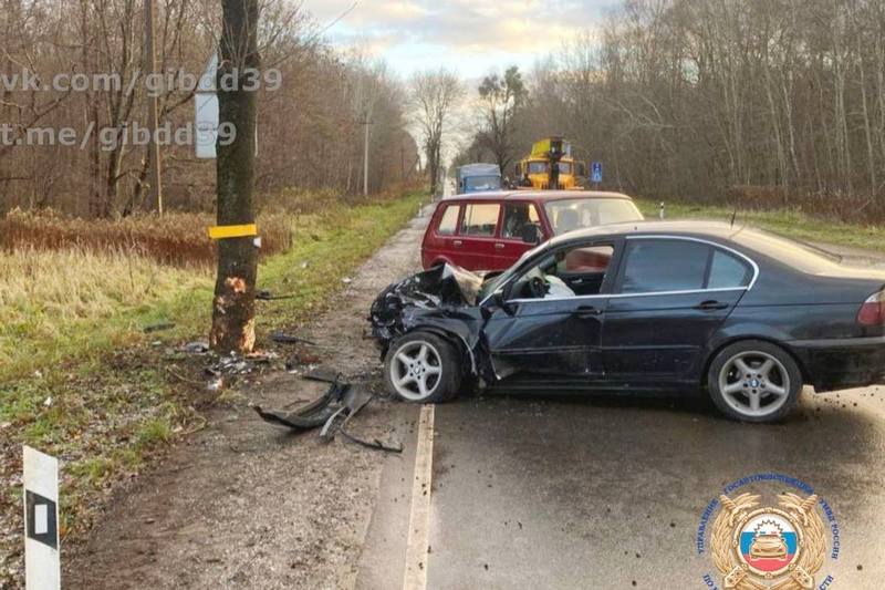 Есть пострадавшие. Около 7:36 на дороге Калининград – Мамоново, в районе СНТ «Мечта», автомобиль БМВ сначала въехал в дерево, потом в «ВАЗ». Устроивший замес водитель получил травмы, дальше он поехал на скорой помощи.