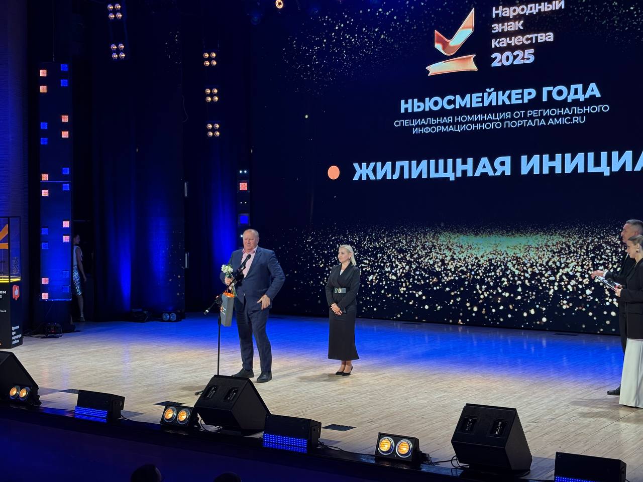 Ньюсмейкером года стала строительная компания "Жилищная инициатива". Для получения награды на сцену пригласили генерального директора Юрия Гатилова.
