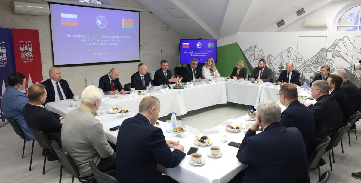 Сегодня, 18 ноября, в представительстве Россотрудничества в Республике Беларусь состоялась встреча губернатора Юрия Слюсаря с российскими соотечественниками, проживающими в Республике Беларусь. Обсуждались вопросы укрепления деловых и культурных связей. Об этом сообщает Пресс-служба губернатора Ростовской области.