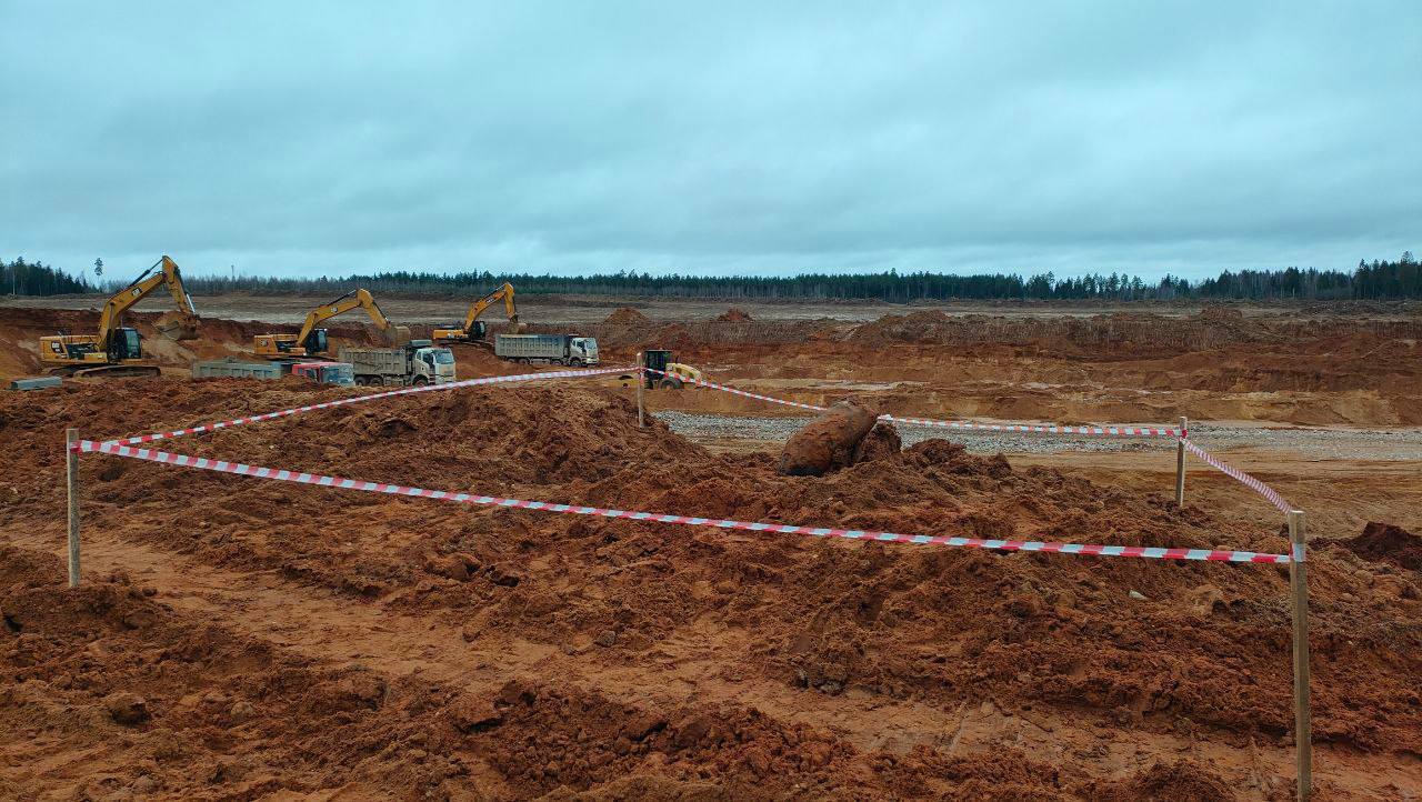 Во время земляных работ на песчаном карьере обнаружили неразорвавшуюся бомбу времен войны.