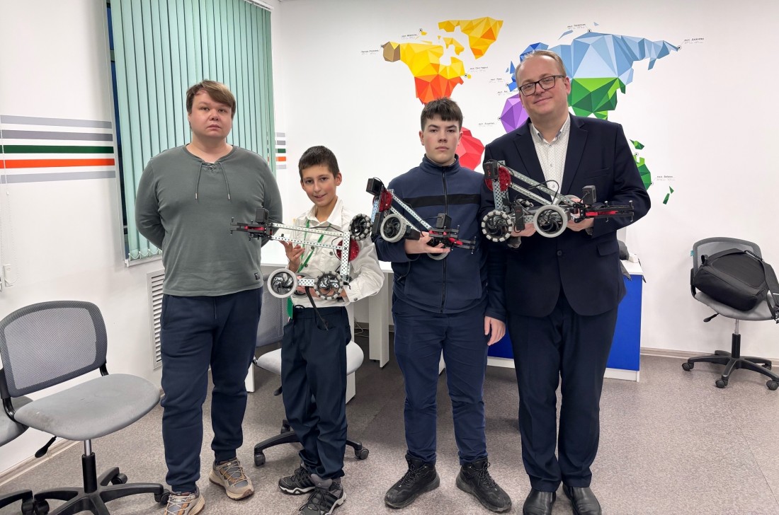На выставке роботов-домашних питомцев Давид Ткач, ученик 3 класса Академического лицея Петрозаводска, представил роботов-насекомых – таракана Тимофея и жука Степана. По задумке Давида, Тимофей ползает в поисках «батареек-печенек», а его друг Степан помогает ему, взлетая и осматривая местность.