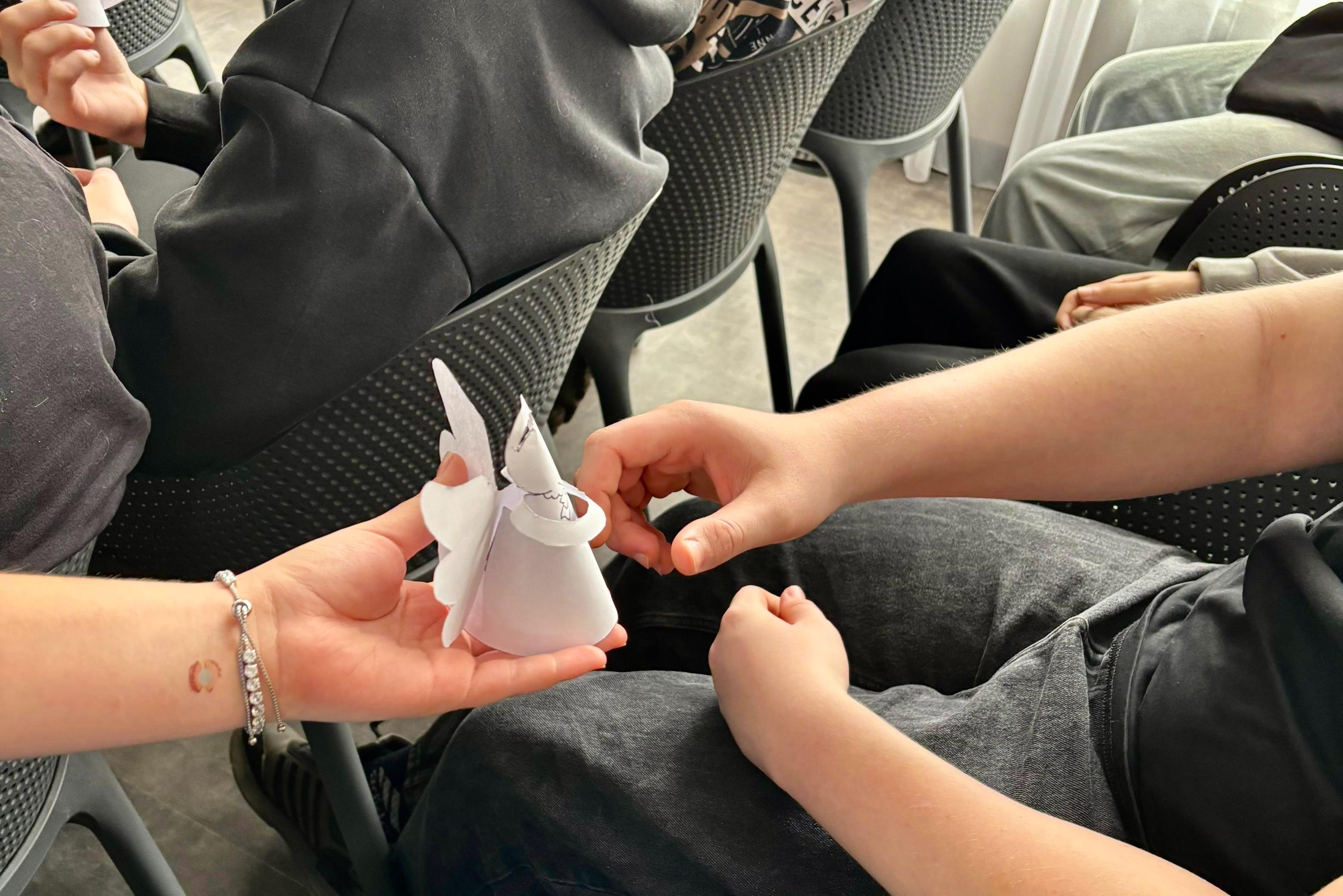 В финале театр эстрады «Эдельвейс» исполнил песню «Аллилуйя», а воспитанники Центра детского творчества, вручили всем участникам аппликацию «Ангелы-памяти», сделанную своими руками.