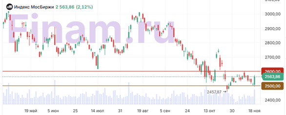 Российский рынок акций в среду, 18 ноября, завершил торги ростом. Это произошло на фоне новостей о планируемой активизации переговоров в Турции по Украине, анонсированной на среду, 19 ноября. Сообщения о подготовке к возобновлению диалога в Стамбуле способствовали улучшению настроений инвесторов.