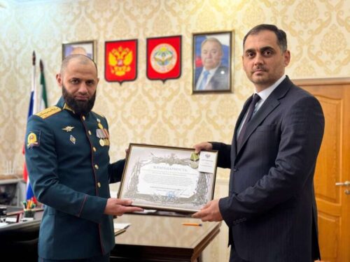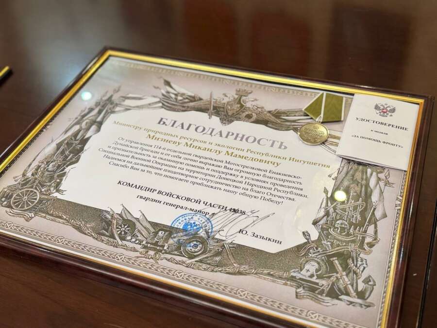 В рамках встречи участник специальной военной операции вручил Микаилу Мизиеву медаль «За помощь фронту», а также благодарность от командира войсковой части гвардии генерал-майора Ю. Зыкина. Награды вручены за оказанную помощь и поддержку в условиях проведения СВО на территории Донецкой Народной Республики.