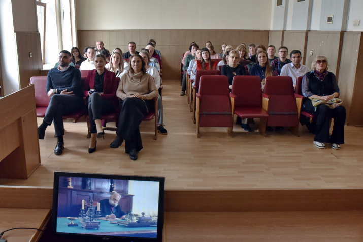 Сотрудники Института биологии южных морей смотрят фильм "Бодрствуя, я служу!". Фото: Юрий Югансон/Севастопольское городское отделение РГО