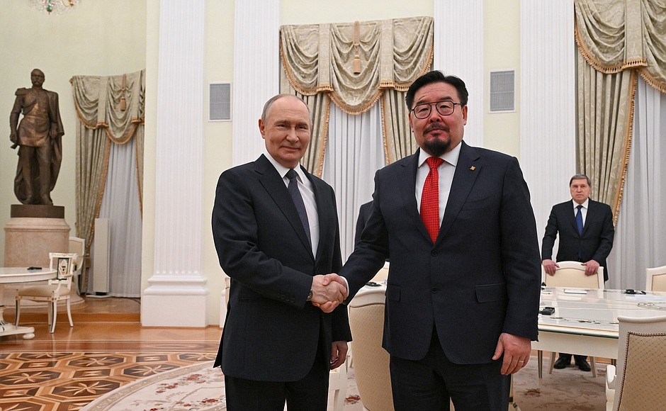 "Сегодня имел удовольствие встречаться с вашим коллегой, с премьером Госсовета Китайской Народной республики, мы тоже говорили с ним о возможности расширения нашего сотрудничества в трехстороннем формате (Россия-Монголия-Китай)", — сказал Путин на встрече в Кремле.