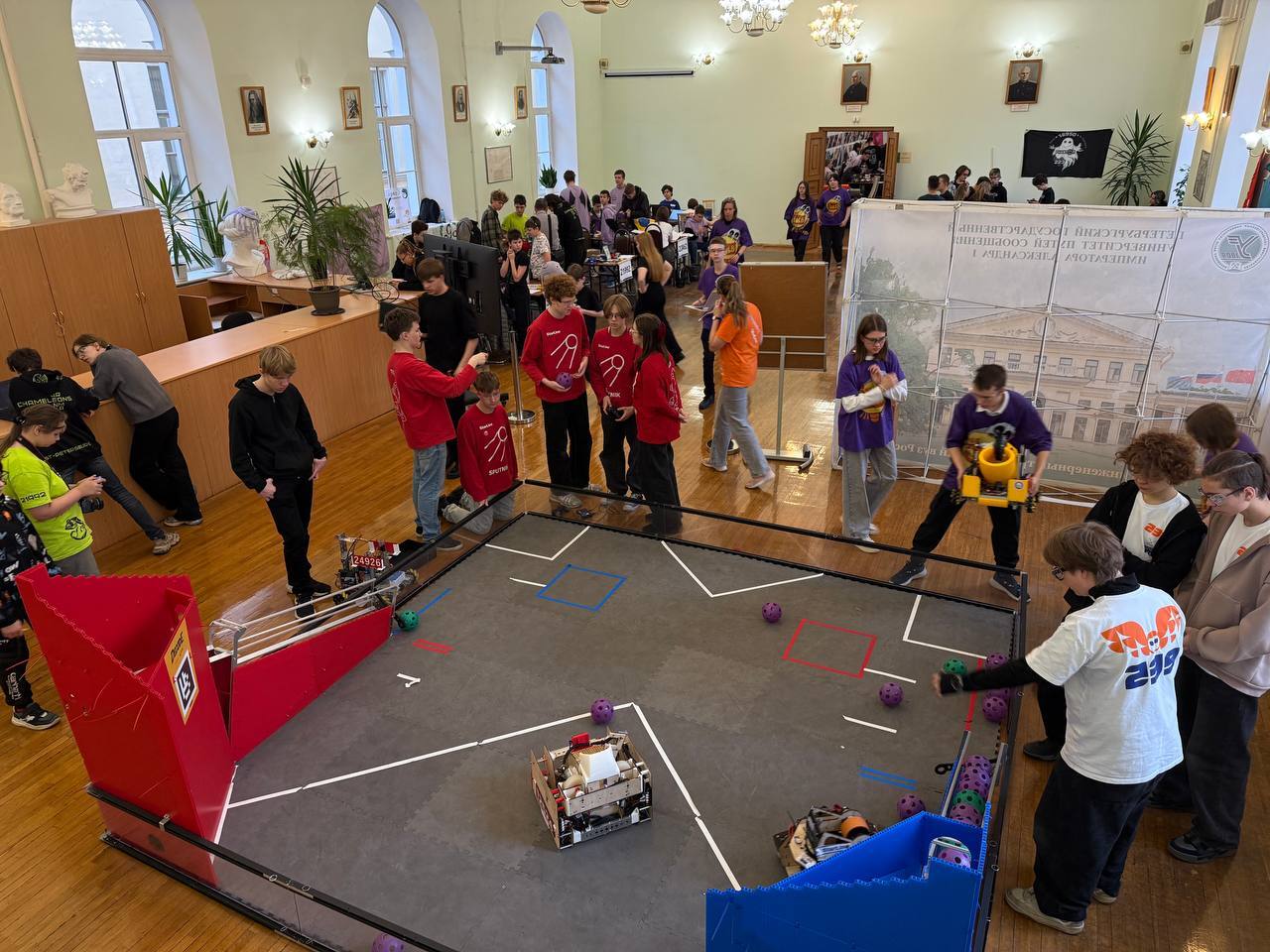 Соревновательная площадка на базе Петербургского государственного университета путей сообщения собрала около 200 юных инженеров от 12 до 18 лет. Для участия в турнире ребята несколько месяцев самостоятельно конструировали и программировали роботов, а в минувшее воскресенье их «подопечным» предстояло сразиться на игровом поле, выполняя задания регионального отборочного этапа.