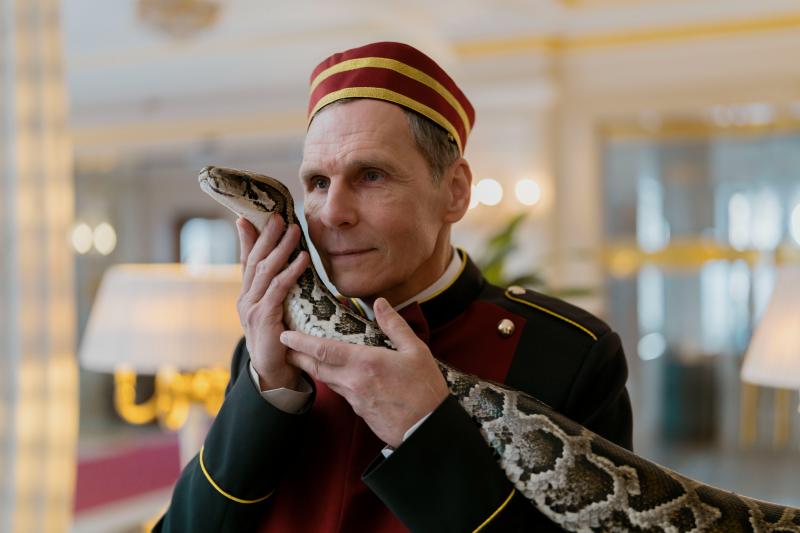 А вот с 26-килограмовым питоном Чириком у актера проблем не было.