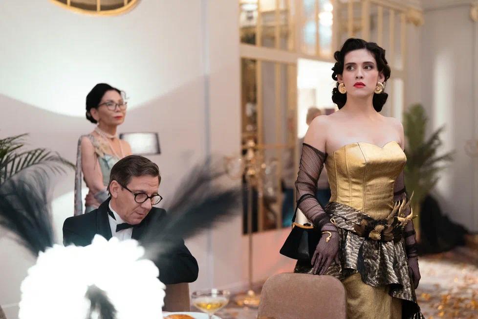 «Я играю мексиканскую журналистку Мерседес, которая из корыстного интереса пытается очаровать Юрия Кнорозова. Это нереальный во всех смыслах персонаж, женщина из 50-х. Для того, чтобы я больше походила на идеал красоты тех лет, мне под платье вшили специальные подушечки, чтобы бедра казались шире», – рассказала она, кокетливо поправив шляпку и тигровую повязку на волосах.