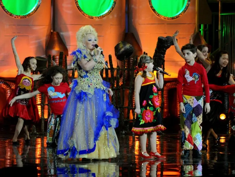 Певица Надежда Кадышева во время выступления на юбилейном концерте, посвященном 20-летию детского ансамбля «Непоседы», в Государственном Кремлевском дворце