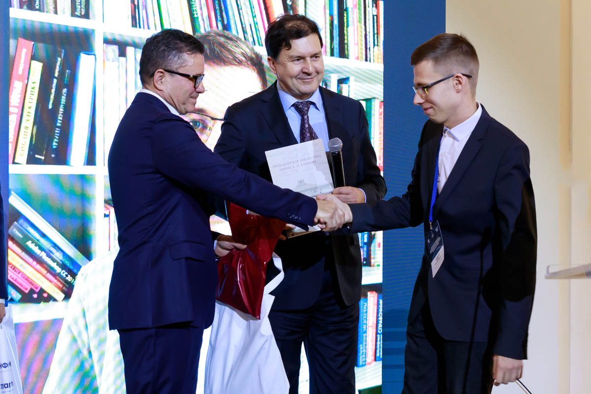Генеральный директор РГБ, президент РБА Вадим Дуда принял участие в торжественной церемонии награждения победителей Всероссийского конкурса «Библиотеки. ПРОдвижение». Были награждены победители Всероссийского конкурса научных работ по библиотековедению, библиографии и книговедению и XII Всероссийского конкурса «Библиотечная аналитика — 2025».