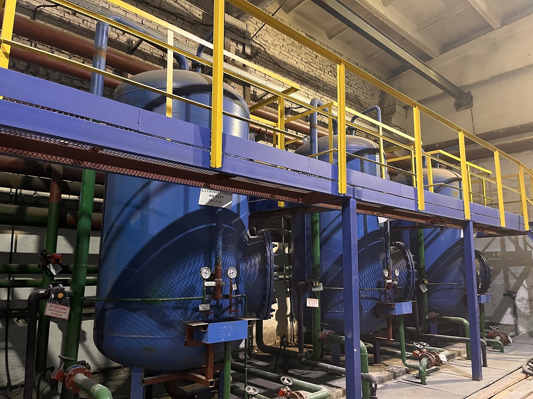 В цехе реконструировали водоподготовительную установку — смонтировали новое оборудование для подготовки химически очищенной воды, и сейчас идут пусконаладочные работы. Среди новинок — фильтровальное и насосное оборудование, которого раньше не было: например, два анионитовых фильтра для химического обессоливания воды и три осветлительных фильтра, очищающих техническую воду из реки от механических примесей.