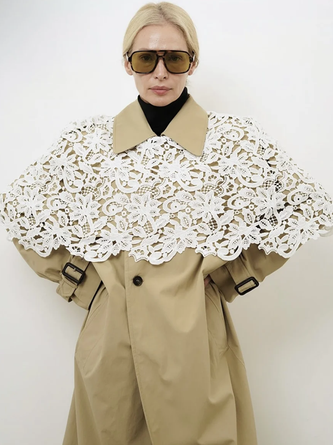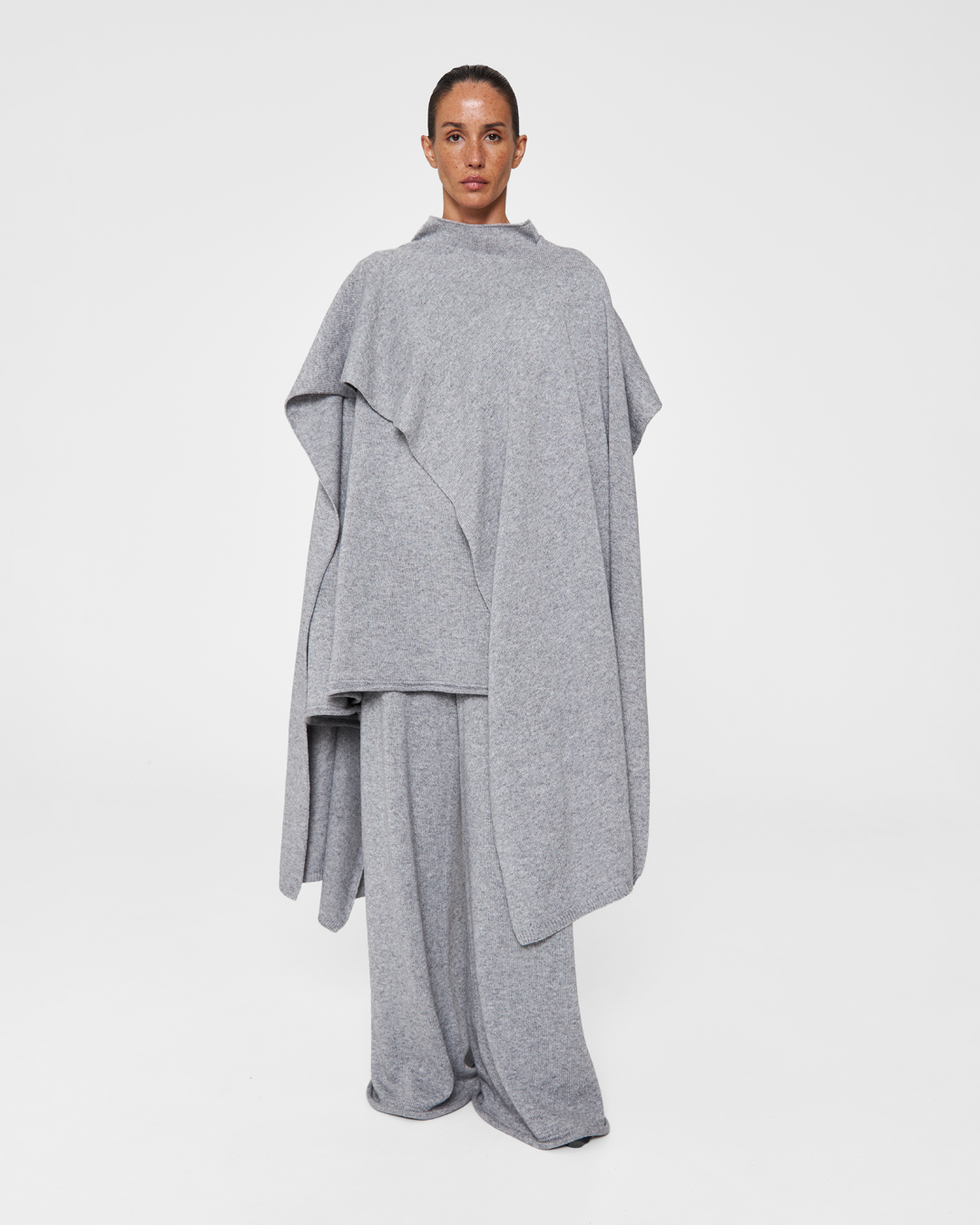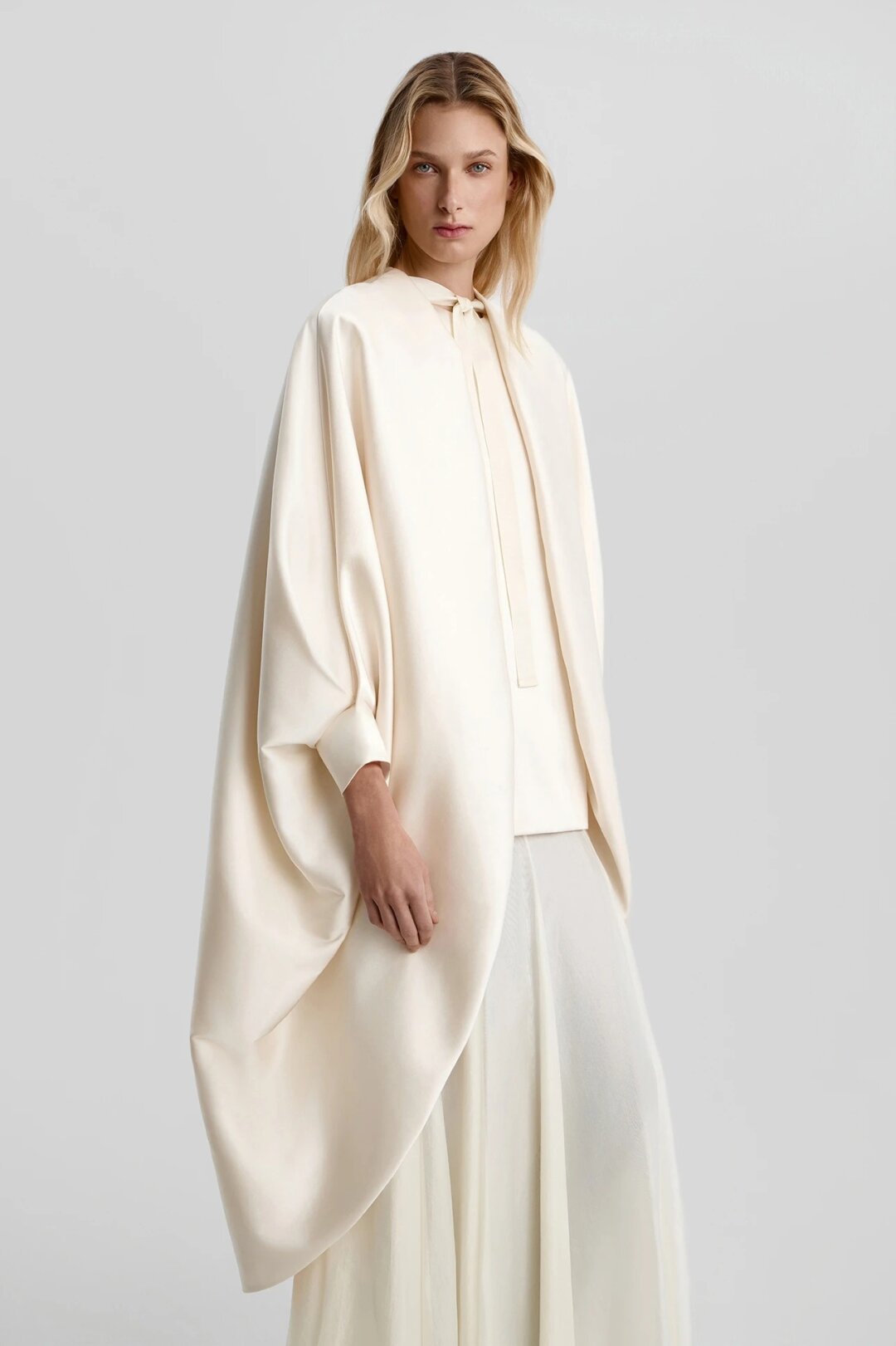 Фотограф Анастасия Рябцова дополняет кейпом Agreeg (из собственной коллаборации с брендом!) нормисный офискорный лук