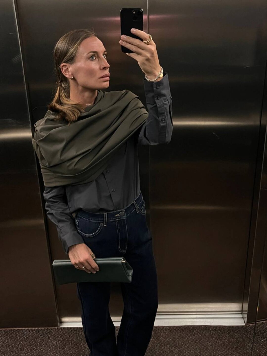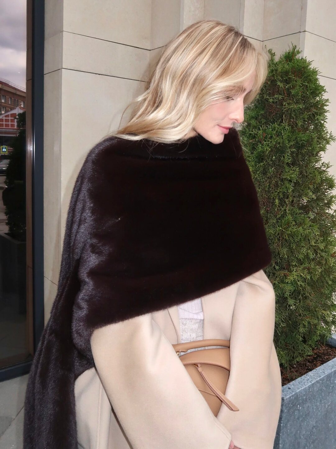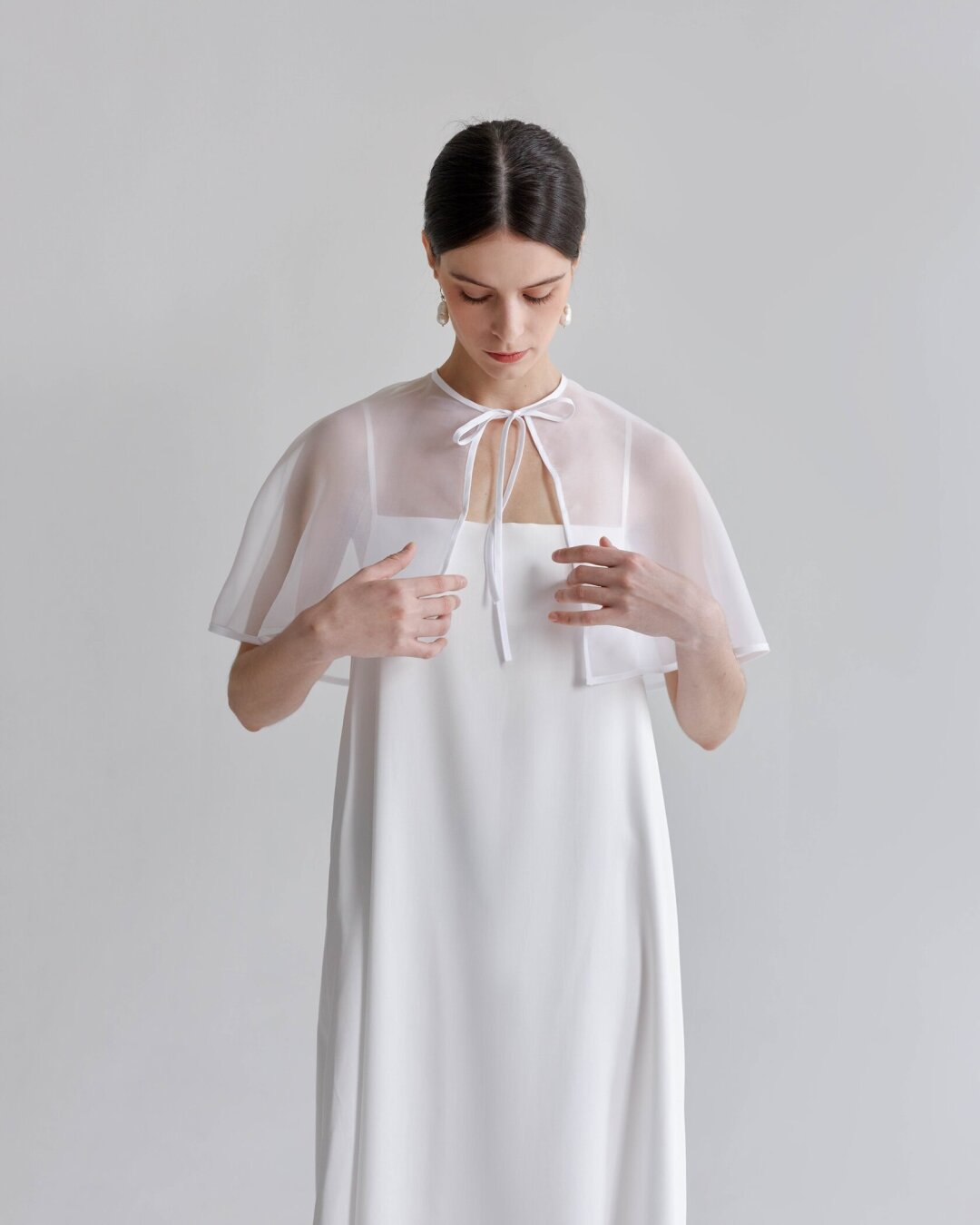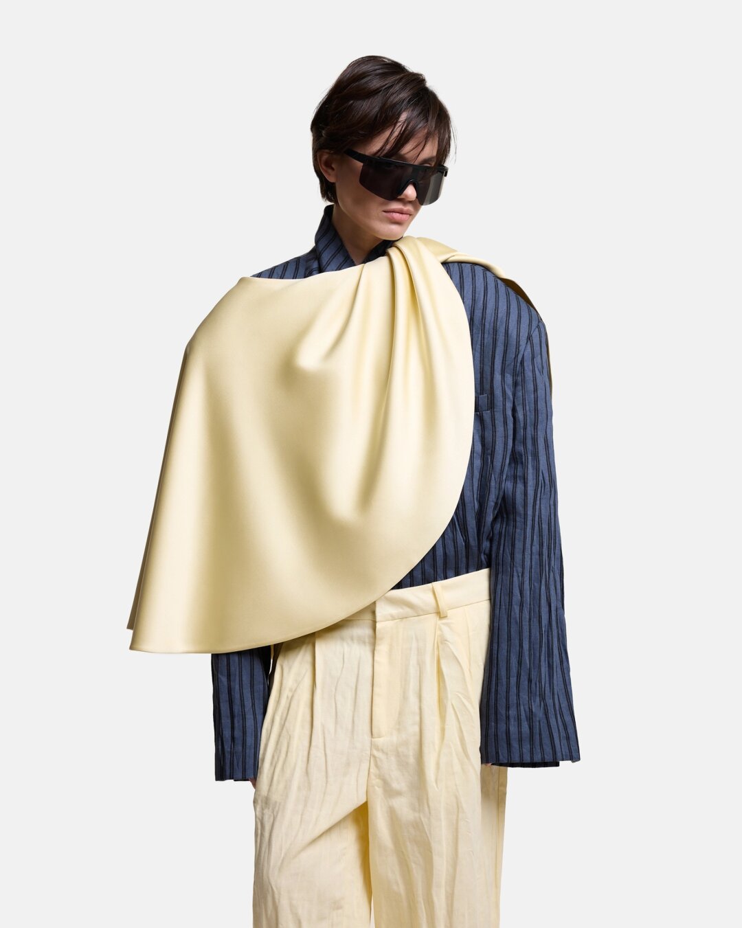 Фотограф Анастасия Рябцова дополняет кейпом Agreeg (из собственной коллаборации с брендом!) нормисный офискорный лук