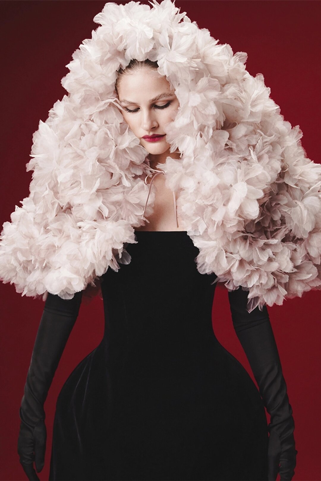 Lля Кати IOWA cтилисты Вова Кравченко и Кирилл Павлов нашли архивный кейп Dolce & Gabbana 2005 года на Avito (забирали у буржуазной леди с Ордынки!), а затем дополнили фатиновым платьем Noir Kei Ninomiya и туфлями Vivienne Westwood