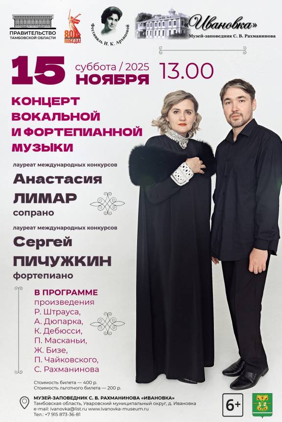 15 ноября в Музее-заповеднике С. В. Рахманинова состоится концерт вокальной и фортепианной музыки.