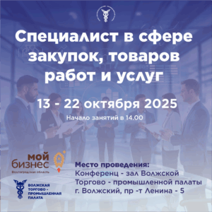⏱С 13 по 22 октября 2025 года в Волгоградской области состоится значимое событие для представителей малого и среднего бизнеса: Центр поддержки предпринимательства проводит обучение по программе повышения квалификации «Специалист в сфере закупок, товаров, работ и услуг».