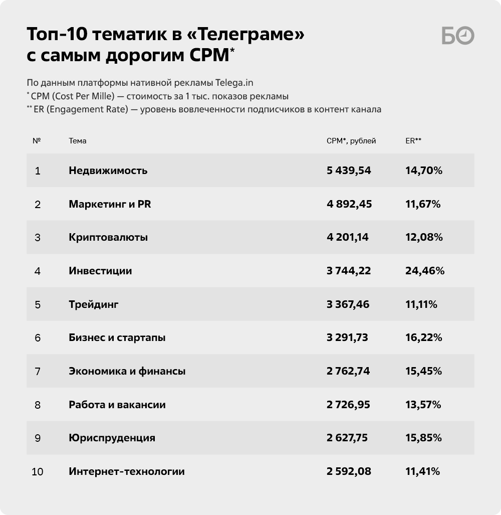 Дороговизну рекламы в «Телеграме» отмечают и другие эксперты «БИЗНЕС Online». По словам Шарафеева, каждый автор канала сам устанавливает стоимость. «Нет четкого критерия, каждый интуитивно надеется на активность аудитории, на доверие, исходя из этого формирует стоимость. К примеру, у инфлюенсера, который имеет 5 тысяч подписчиков, цена может быть как 20 тысяч, так и 50 тысяч рублей. Четко можно обозначить цену только в Telegram Ads — минимальная стоимость показа — 2 евро», — отмечает руководитель отдела рекламы агентства Fragency.