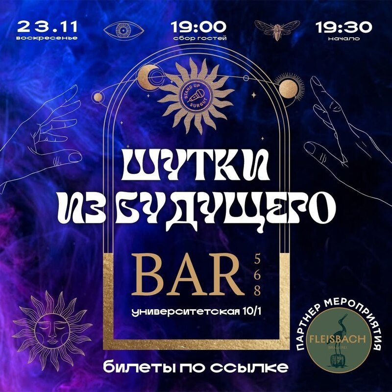 19.30 – шоу «Шутки из будущего» в «Bar 365» (Университетская, 10/1). Уникальное комедийное шоу, где комик Александр Хомяков и профессиональный таролог Юлия Шадрина отвечают на вопросы зрителей с помощью карт Таро. Результат – смешные догадки от Александра и профессиональная консультация от Юлии. Гостей ждут прошлое, будущее и анекдот в одном флаконе. Стоимость билета – 500 рублей.