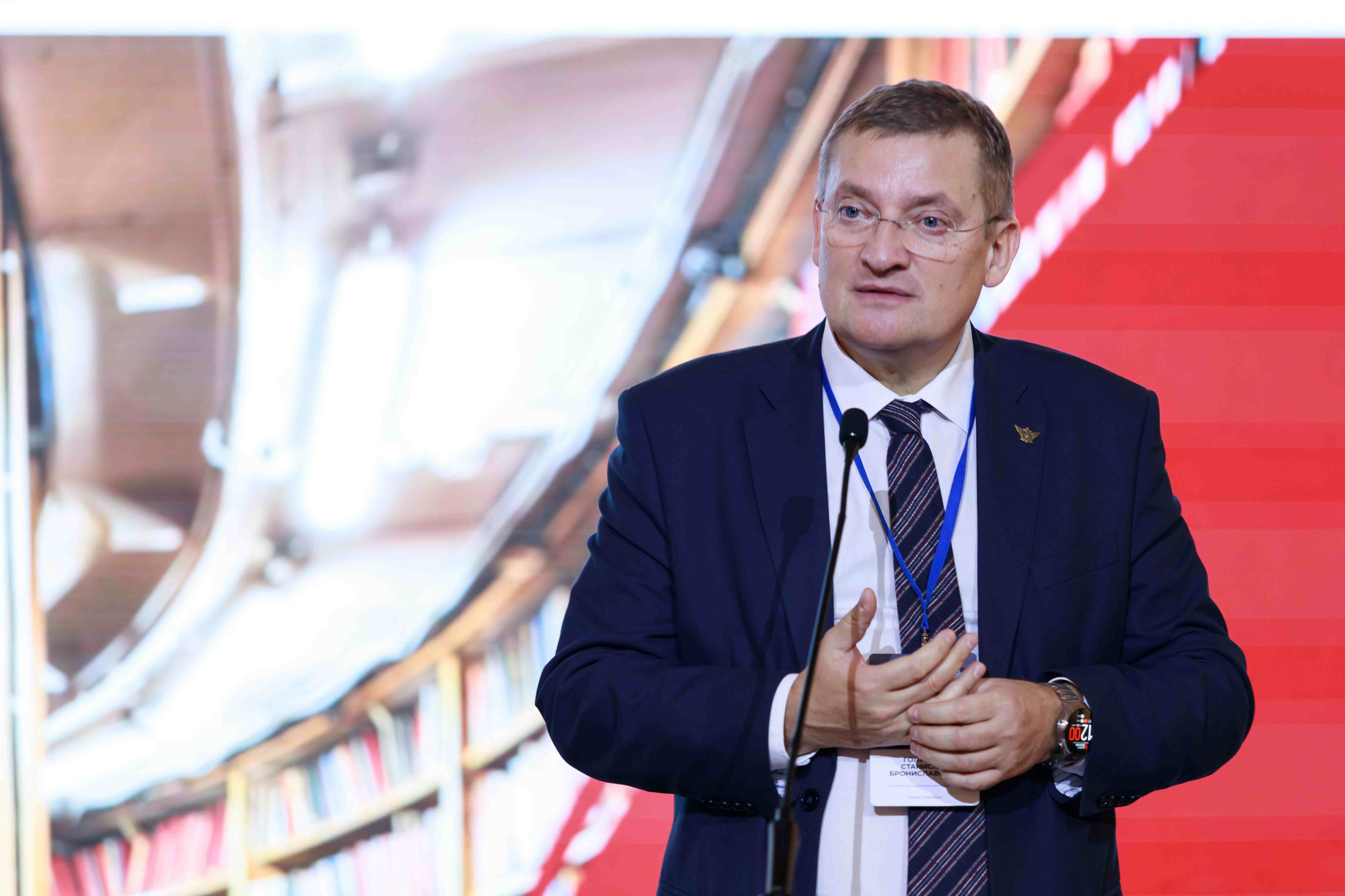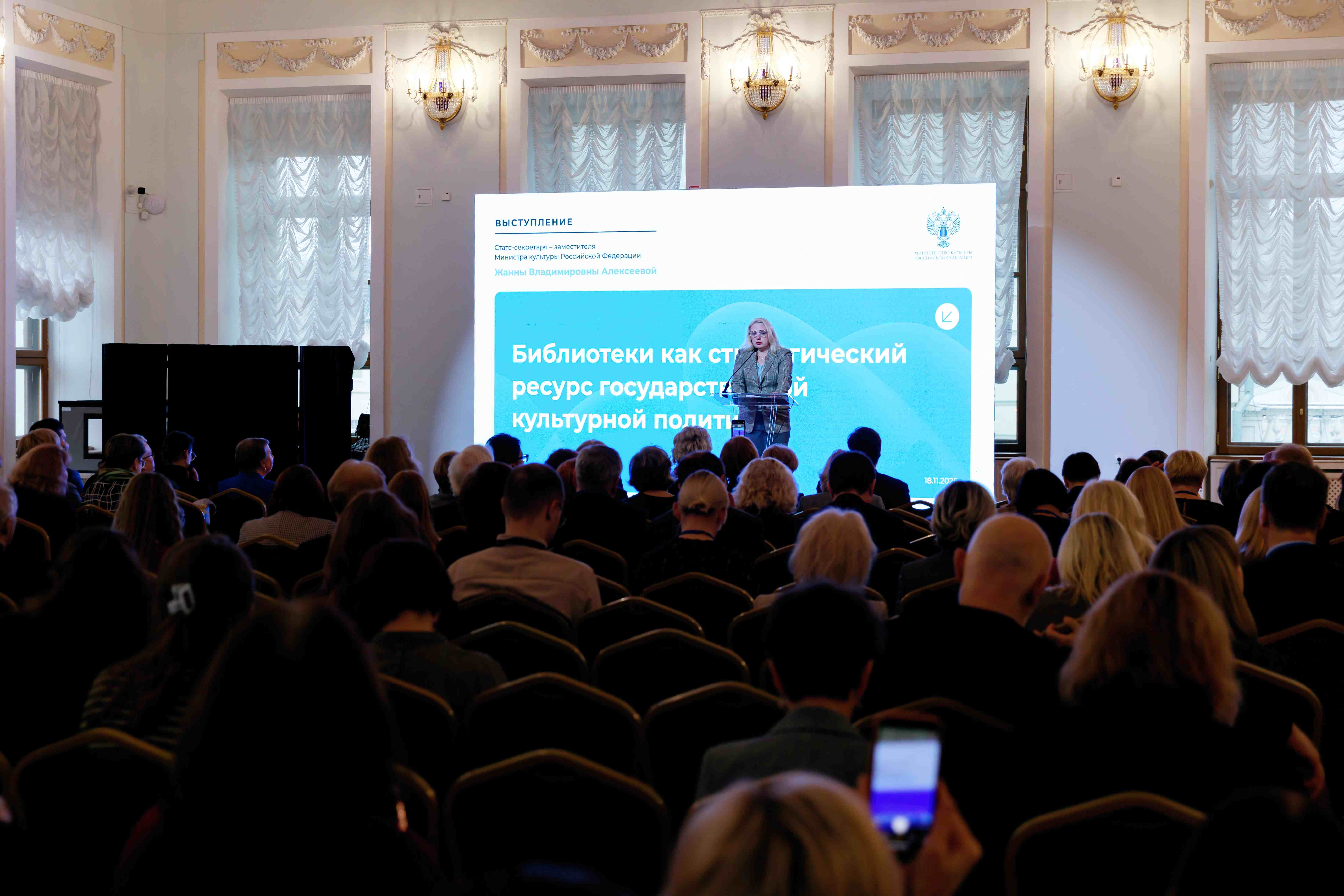 На пленарном заседании с докладами о деятельности библиотек в 2025 году и перспективах их развития выступили: генеральный директор Российской национальной библиотеки Д.О. Цыпкин; генеральный директор Российской государственной библиотеки В.В. Дуда; генеральный директор Президентской библиотеки им. Б.Н. Ельцина Ю.С. Носов.