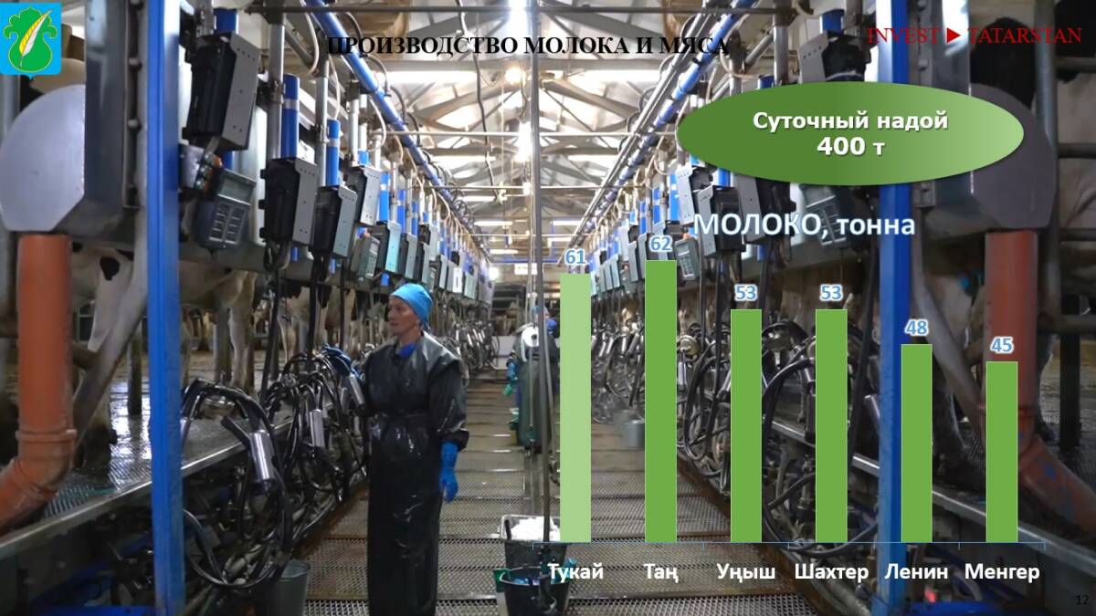 Несмотря на высокие показатели по удоям, в районе практически не занимаются переработкой молока. Минуллина обратила на это внимание инвесторов и назвала нишу перспективной.