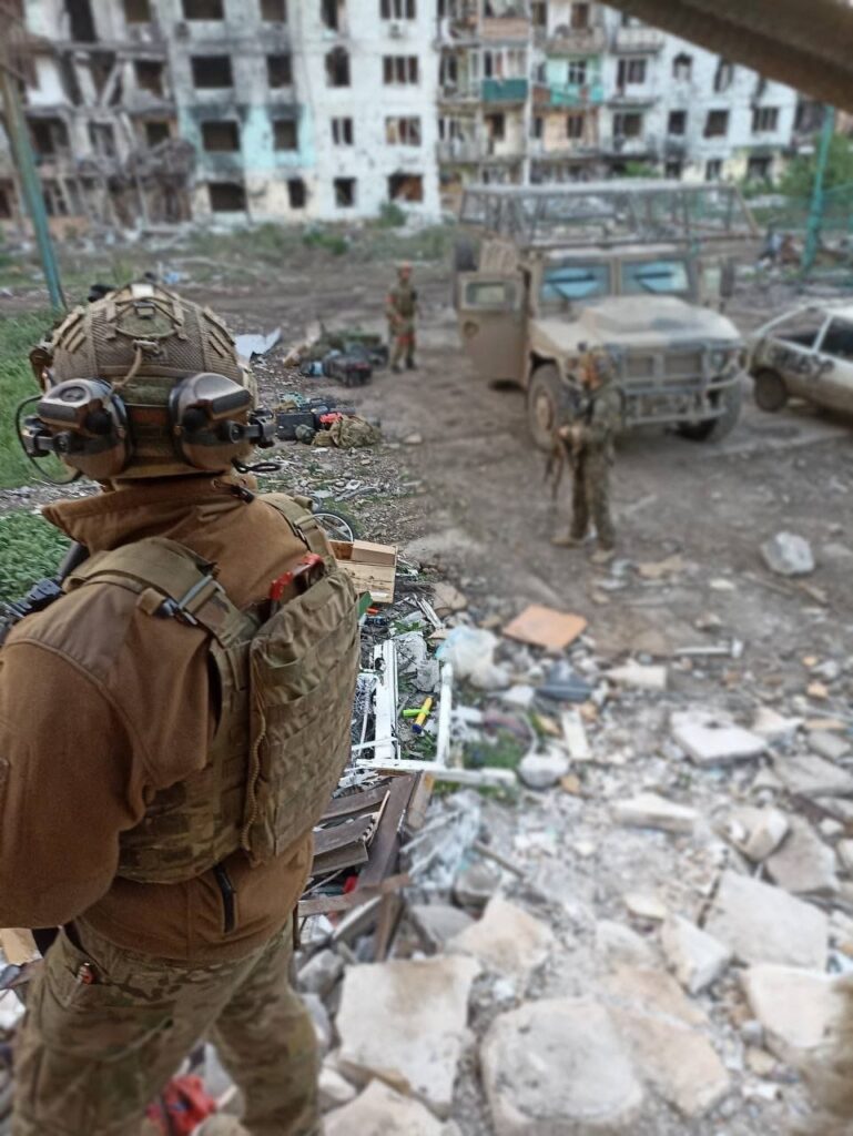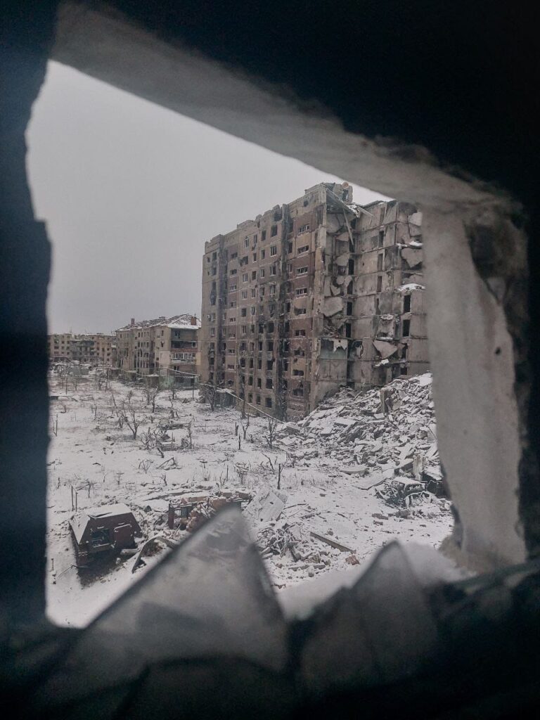 — Его полностью разрушили. Ни одного уцелевшего здания! В голове постоянно крутилась строчка из песни: «Город смотрит пустыми глазницами окон». Мы жили в подвалах. Устанавливали генератор для подачи электричества, привозили воду. Поразило то, что увидели в некоторых квартирах. На столах были кружки, тарелки… будто люди только что позавтракали, собрались и уехали, бросив все… За все время пребывания в Бахмуте не встретили ни одного мирного жителя. В Часовом Яре еще оставались люди. В подвале обнаружили двух женщин с маленькими детьми. «Нам просто некуда было уезжать», — сказали они. В итоге повезли их в сторону России. По пути украинский дрон начал нас бомбить. Те, кто им управлял, видели, что везем женщин и детей… К счастью, обошлось без пострадавших… Запомнился дедушка, который жил в «украинской» части Часова Яра и часто ездил на «Волге» в нашу сторону. Никого не боялся. Никто его не задерживал. Думаю, дедушка передавал наши координаты противнику. Дома, где мы находились, часто обстреливали, его жилище — никогда.