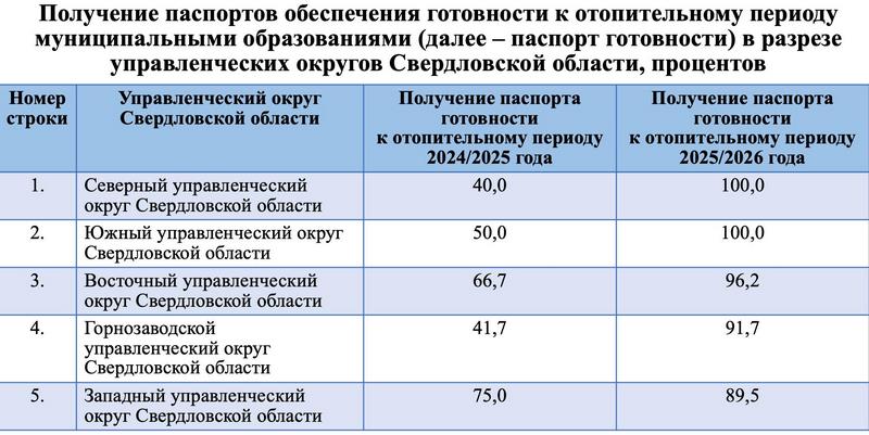 "В этом году мы вошли в отопительный сезон на качественно новом уровне, паспорта готовности получили 83 из 87 муниципалитетов, в то время как годом ранее — лишь 54 муниципальных образования. Сейчас проблемными остаются только Алапаевский район, Дегтярск, Кленовское сельское поселение и Верхняя Тура. Сравнивая с отопительным сезоном 2024/2025 года, когда паспорта готовности не смогли получить 38 муниципалитетов, мы можем говорить о большой проделанной работе, которая принесла свои плоды. Будем прилагать усилия, чтобы достигнуть 100% показателей в следующем сезоне", — написал Денис Паслер в своих соцсетях.