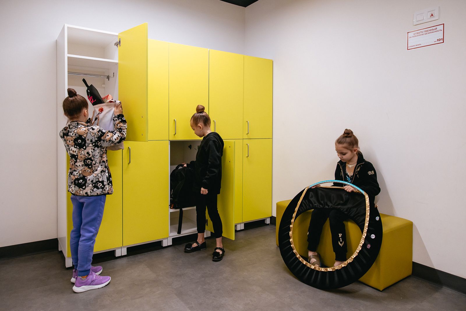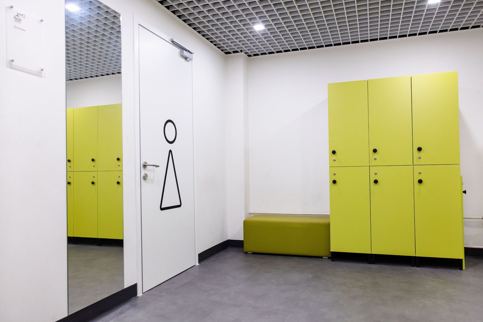 Для комфорта школьников рядом расположены удобные раздевалки со шкафчиками и душевые, как в фитнес-залах. Ребята могут переодеться в спортивную форму и оставить вещи, а при необходимости принять душ после занятий.