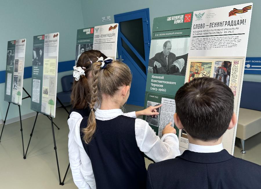 Новой площадкой, где разместилась выставка «Слово — ленинградцам!» (12+), подготовленная нашей газетой совместно с Российской национальной библиотекой, стала гимназия № 397 имени Г. В. Старовойтовой. Историко-просветительский проект старейшей городской газеты, посвященный 80‑летию Великой Победы, в высшей степени созвучен патриотической работе, которая ведется в гимназии.