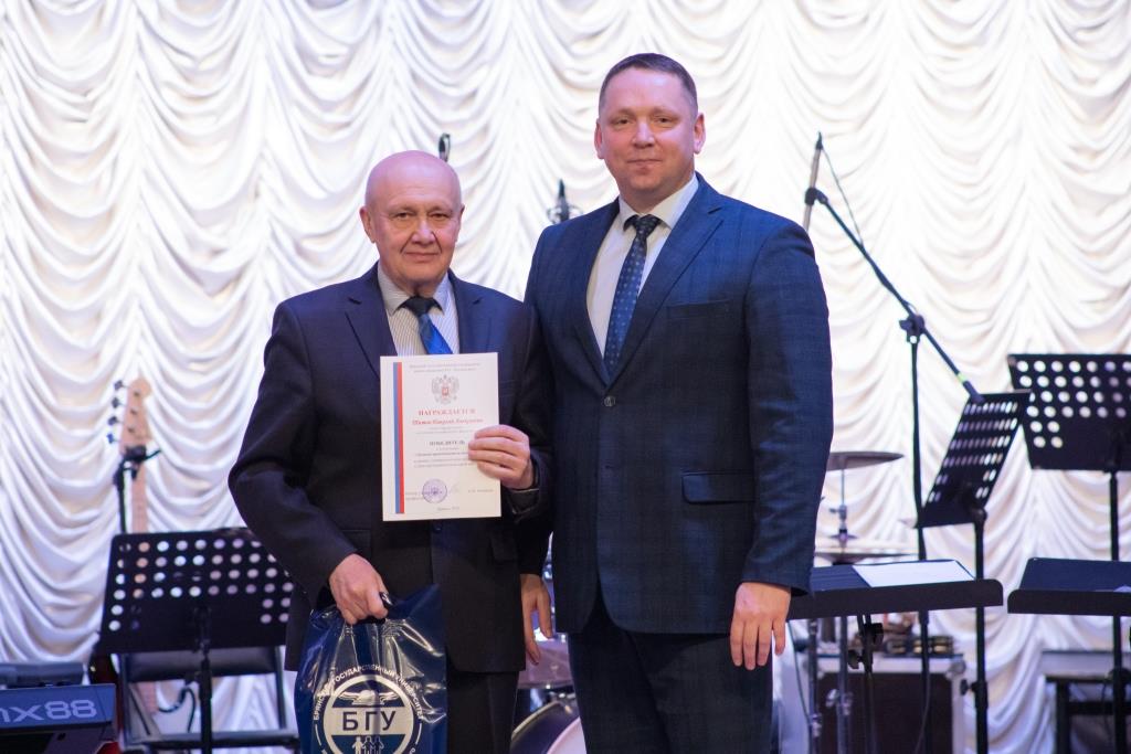 Ректор университета А.В. Антюхов выразил особые слова благодарности и вручил памятные дипломы в номинации «За верность профессии и университету» ветеранам педагогического труда, более 50 лет проработавшим в вузе:Кавалеру ордена Трудового Красного Знамени, Заслуженному ученому Брянской области,доктору биологических наук, профессору кафедры биологииА.Д. Булохову, кандидату филологических наук, доценту кафедры французского языка А.Ф. Болейко. (подробнее)