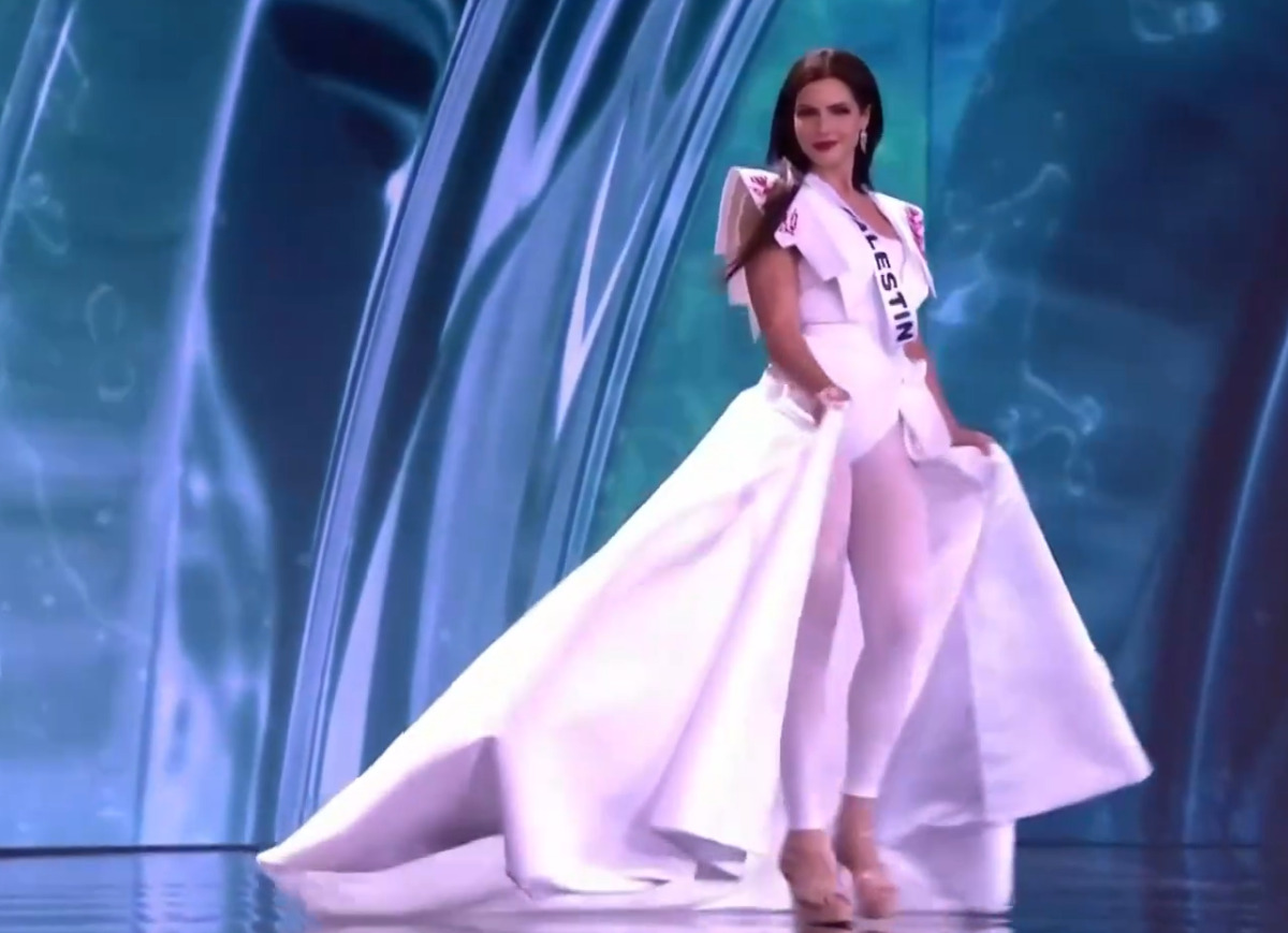 Один из самых необычных образов во время дефиле представила участница из Палестины — она появилась перед членами жюри не в купальнике, а в легком длинном платье.