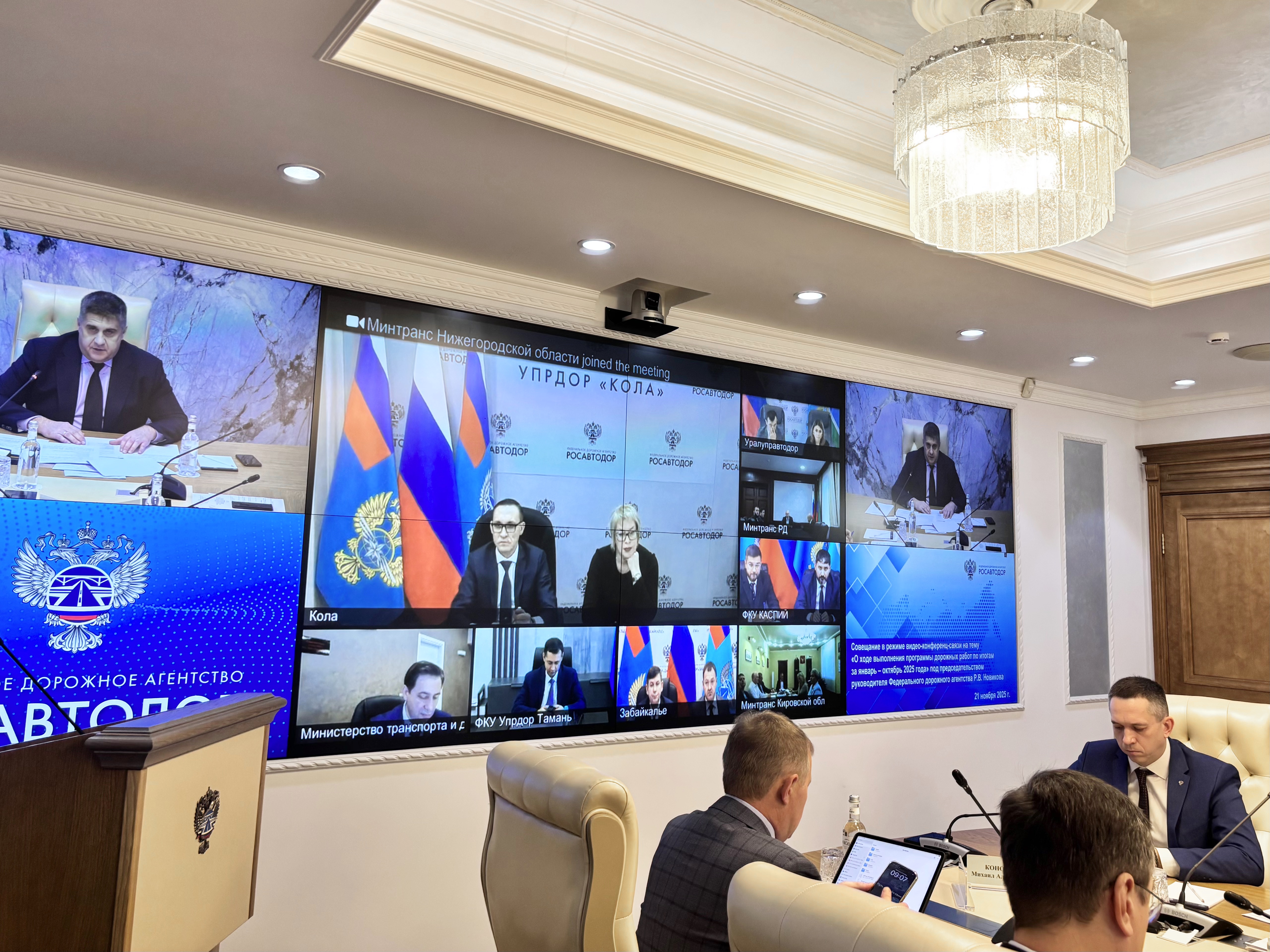 21 ноября в Федеральном дорожном агентстве под председательством главы ведомства Романа Новикова прошло заседание, посвященное выполнению программ дорожных работ за 10 месяцев 2025 года. Среди участников мероприятия – представители профильных управлений Росавтодора, подведомственных федеральных казенных учреждений (ФКУ), а также дорожных ведомств субъектов РФ.