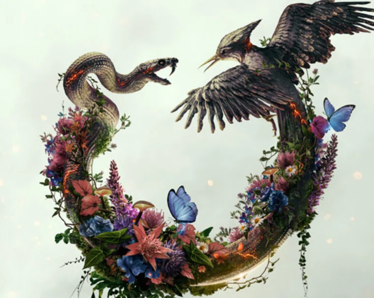 В тизере впервые показали арену — извергающийся вулкан, из огня которого рождаются два силуэта: сойка-пересмешница и змея, сплетающиеся в единый организм. Это символическое изображение отражает главный конфликт франшизы — борьбу между угнетенными дистриктами и властью Капитолия. Хеймитч из Дистрикта 12 прекрасно знает: его родной район не побеждал на Играх сорок лет. Шансы выжить вчетвером против 44 других участников ничтожно малы.