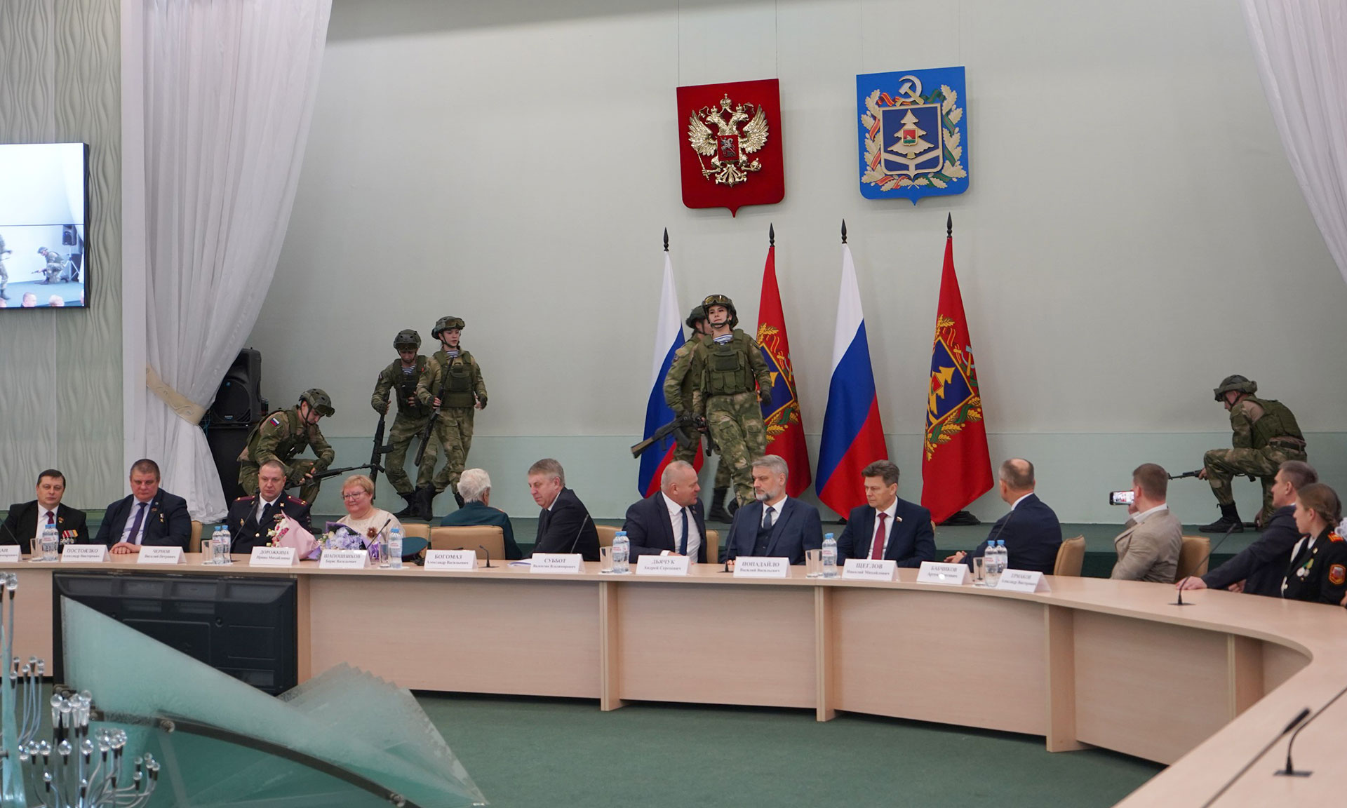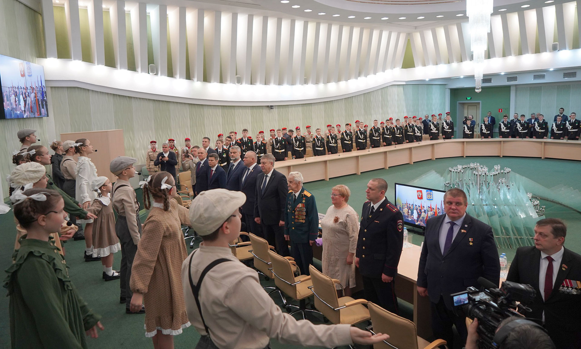 Копию Знамени Победы в Хрустальный зал внесли курсанты регионального отделения военно — патриотического центра «Вымпел» Смоленской области — Стерлигов Кирилл и Беляков Максим. Копию Знамени Победы приняли кадеты Брянской кадетской школы имени Героя России Валерия Ивановича Шкурного, кадеты Дятьковской кадетской школы имени Героя Советского Союза Ивана Андреевича Кашина, кадеты Клинцовской кадетской школы «Юный спасатель» имени Героя Советского Союза Сергея Игнатьевича Постевого и кадеты Стародубского казачьего кадетского корпуса имени Героя Советского Союза Александра Ивановича Тарасенко.