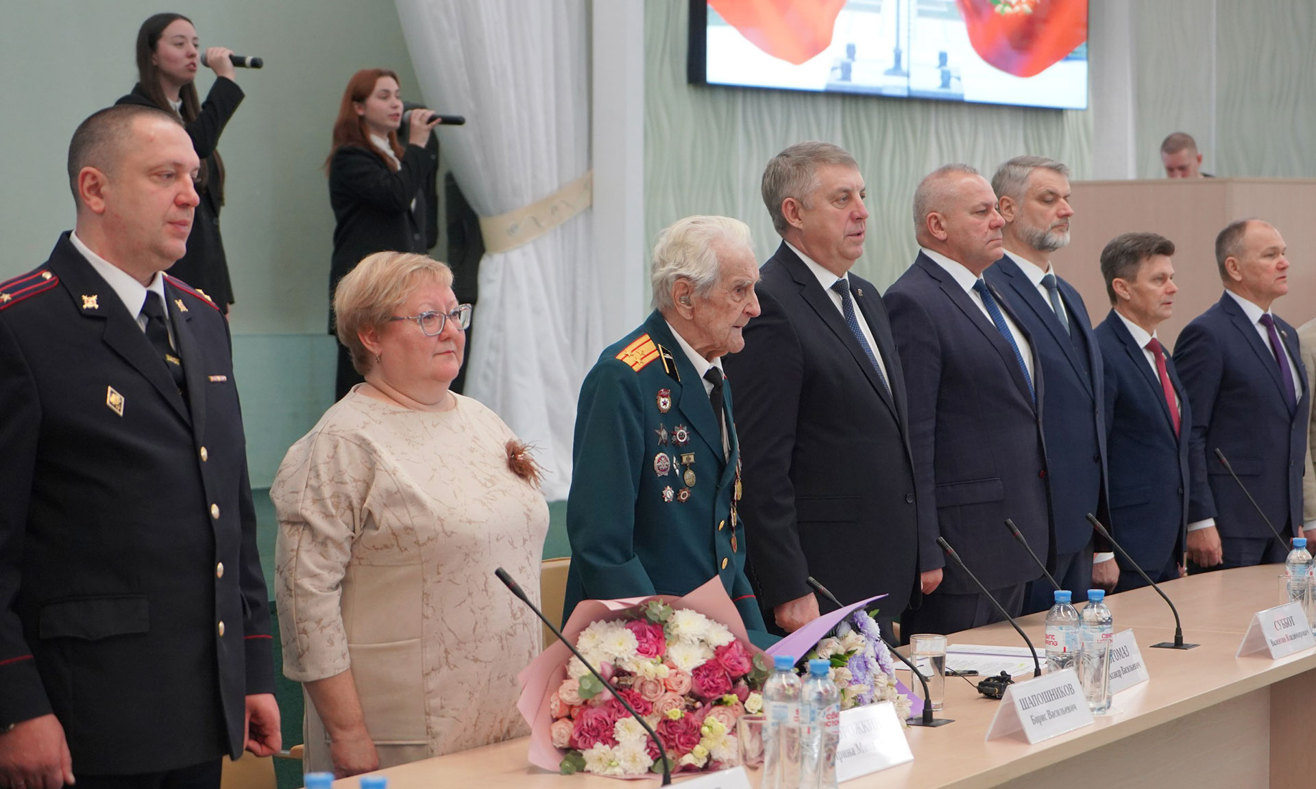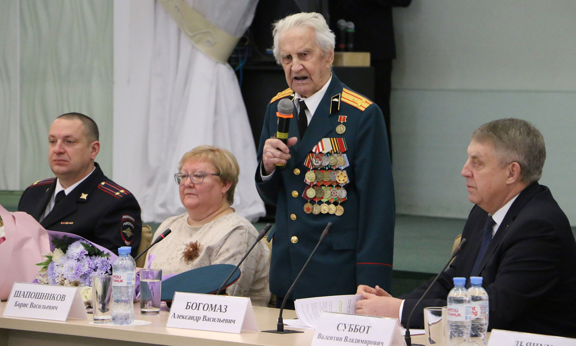 Ветеран Великой Отечественной войны, почётный гражданин города Брянска Борис Васильевич Шапошников обратился к участникам собрания с приветственным словом: