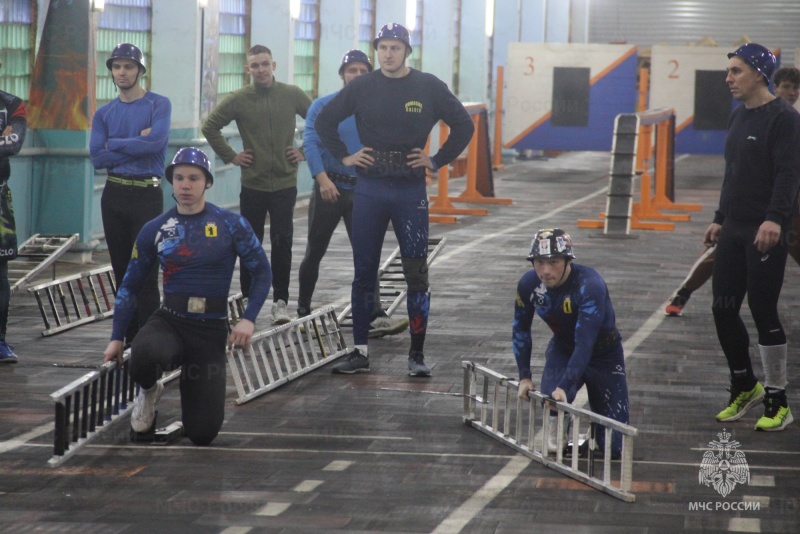 в преодолении полосы препятствий среди членов спортивной сборной команды Главного управления по пожарно-спасательному спорту: