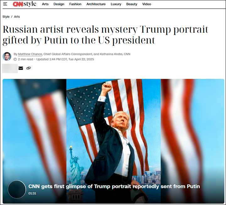 Картина, подаренная Путиным Трампу. Президент США после покушения, сайт издания "Коммерсантъ", скриншот страницы CNN